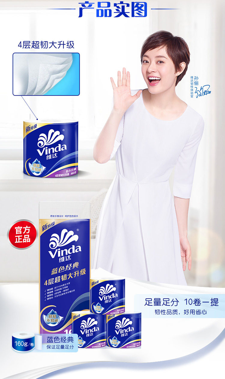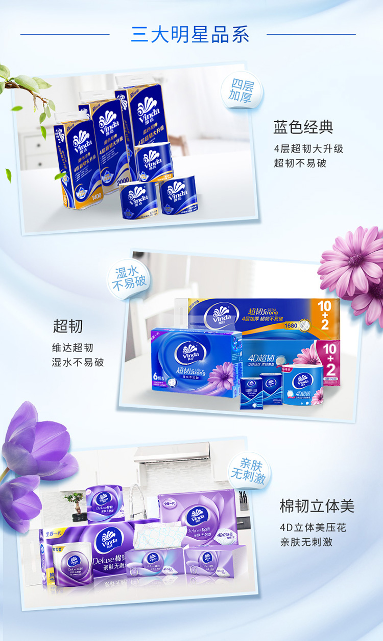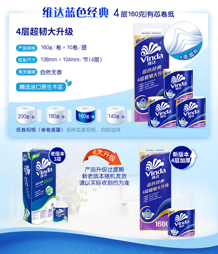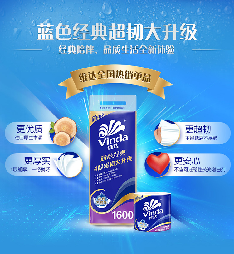 维达蓝色经典卷筒卫生纸1600g