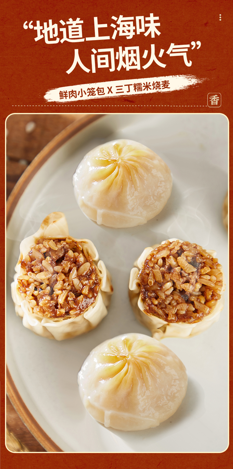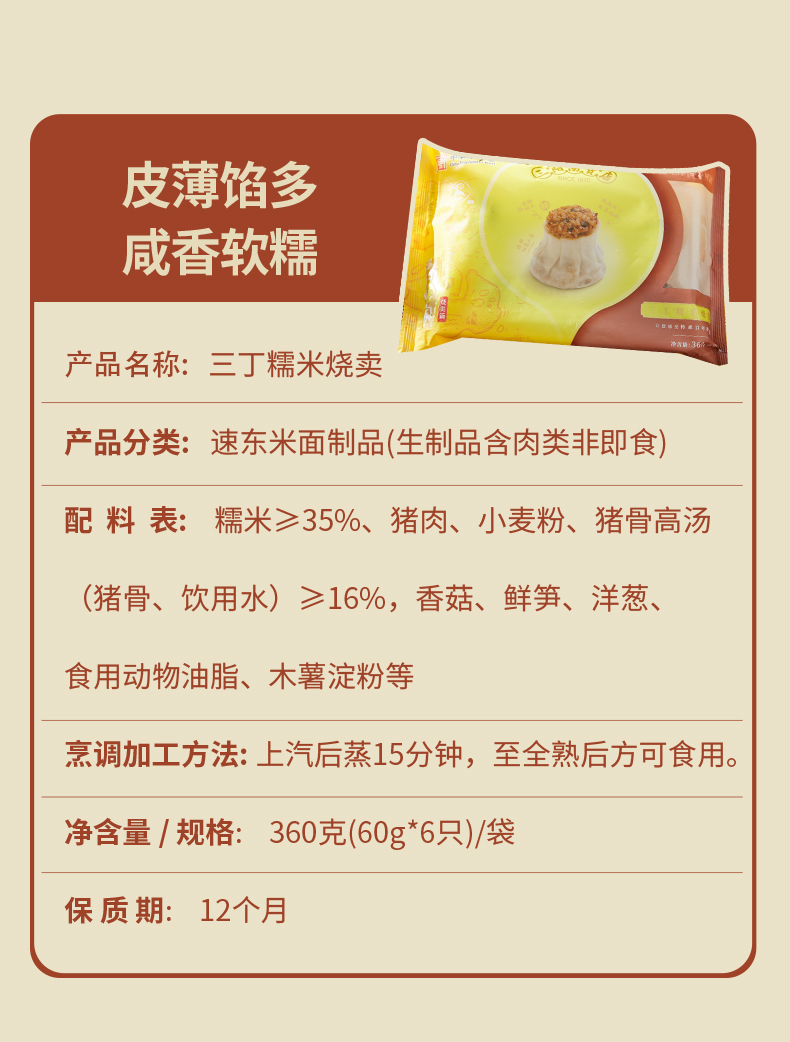 【三阳南货早餐组合】鲜肉小笼192g(8只)*2包+三丁糯米烧麦360g(6只)*4包
