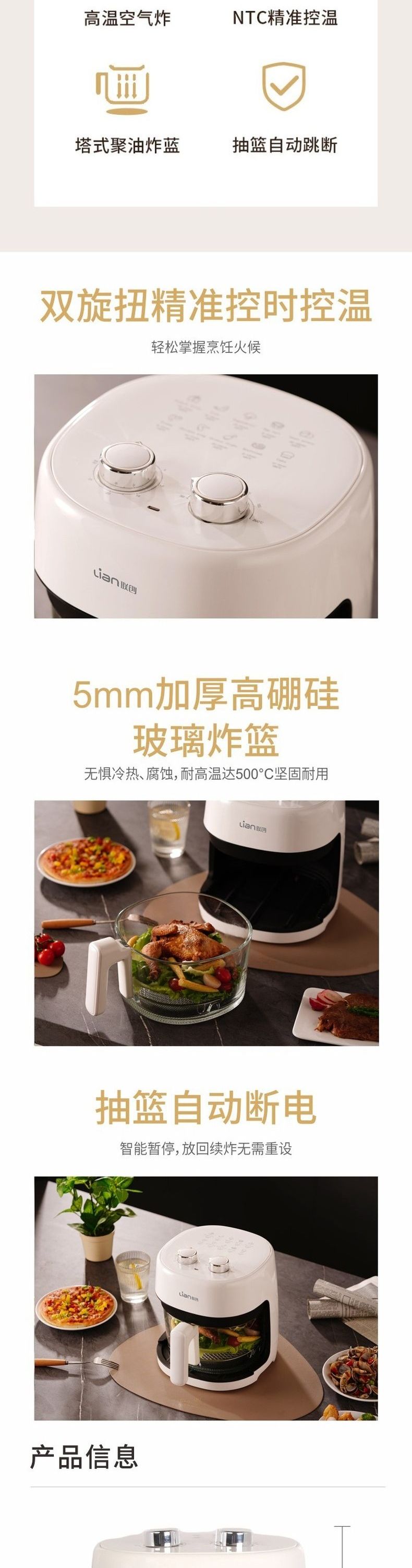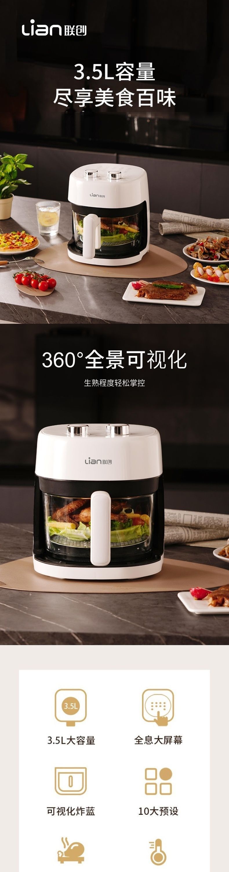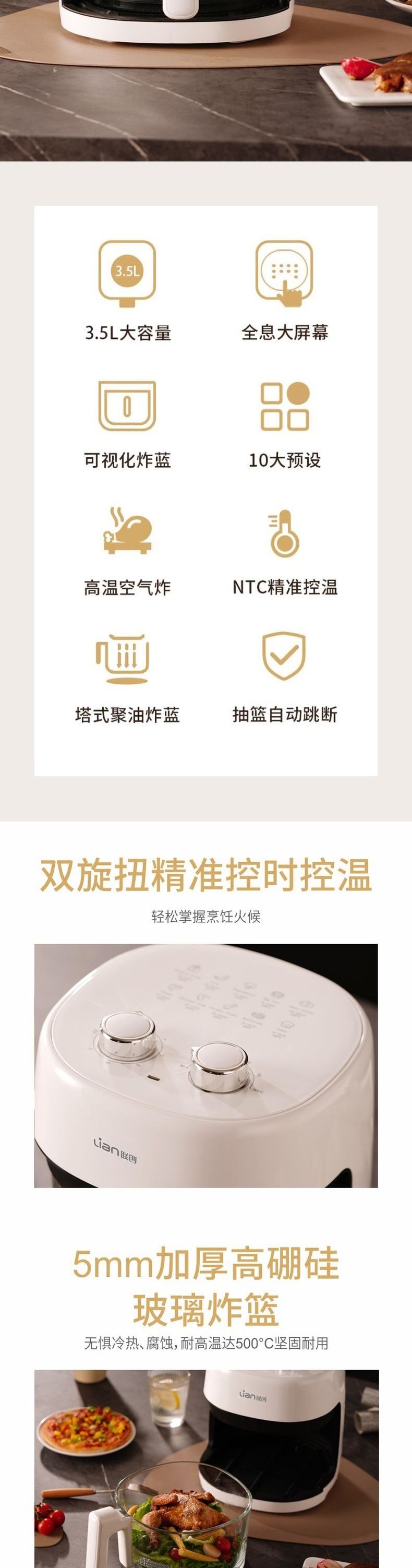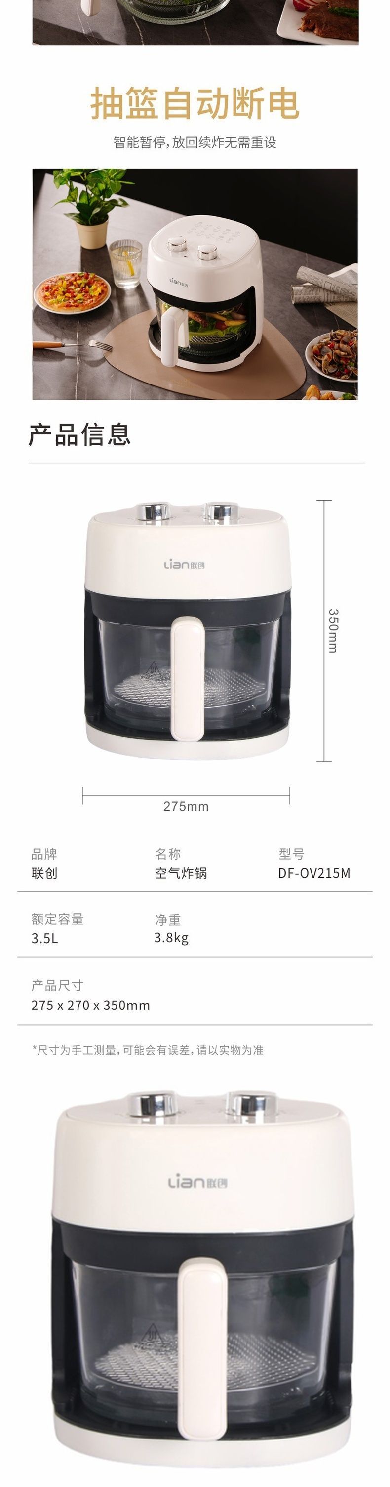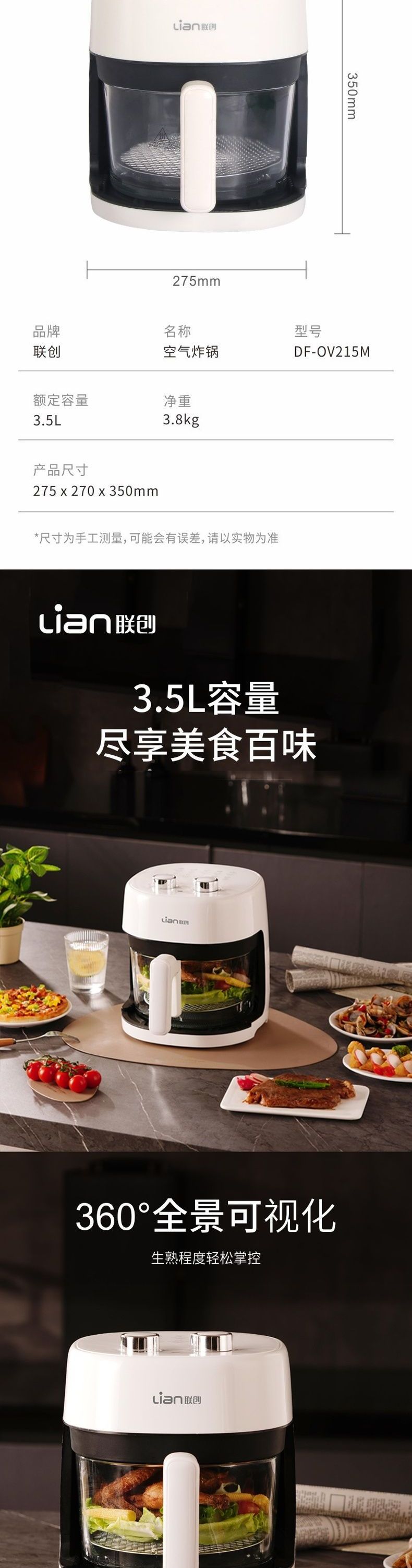 联创 空气炸锅 DF-OV215M 无油电炸锅家用大容量可视