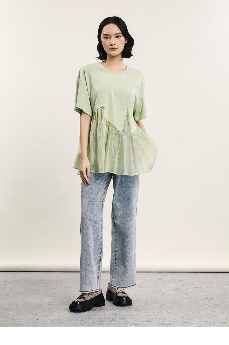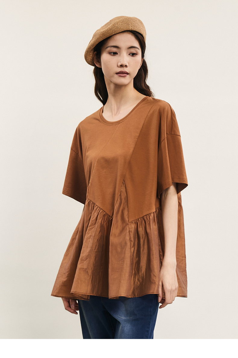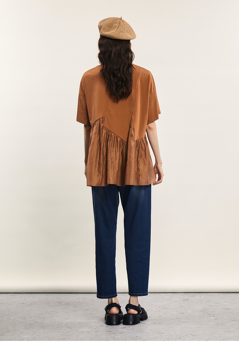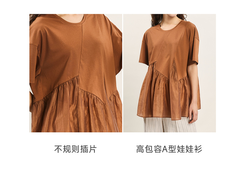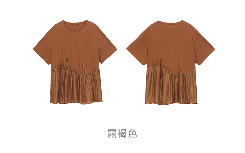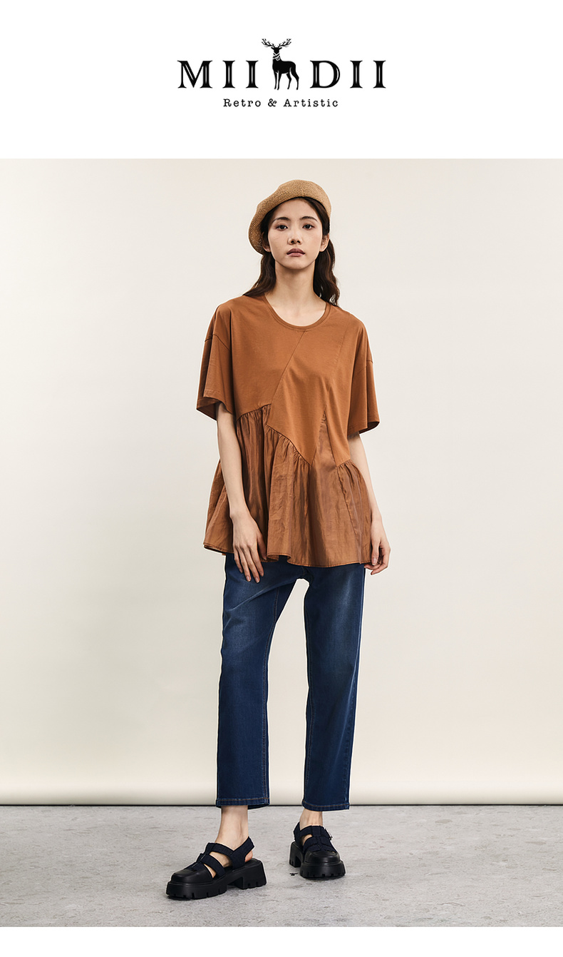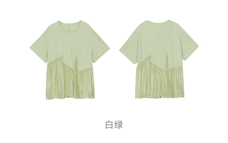 谜底宽松T恤短袖女2024夏季新品时尚拼接A型中长款上衣242MT0608