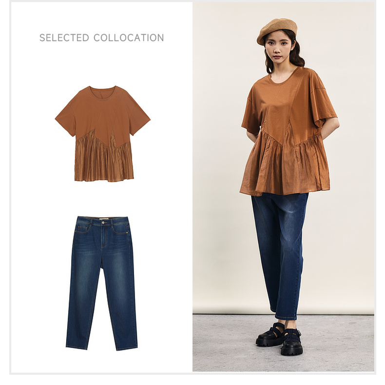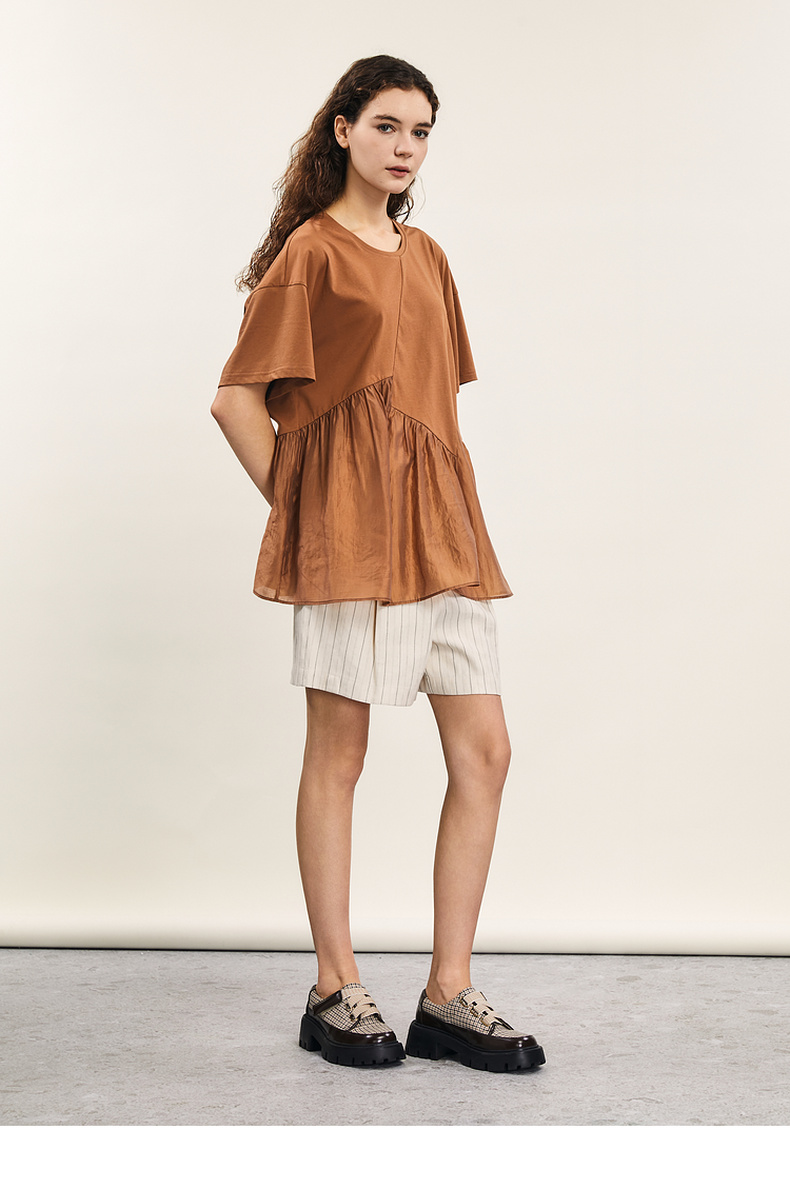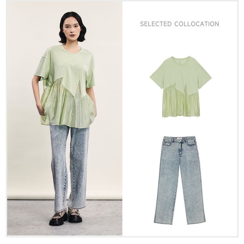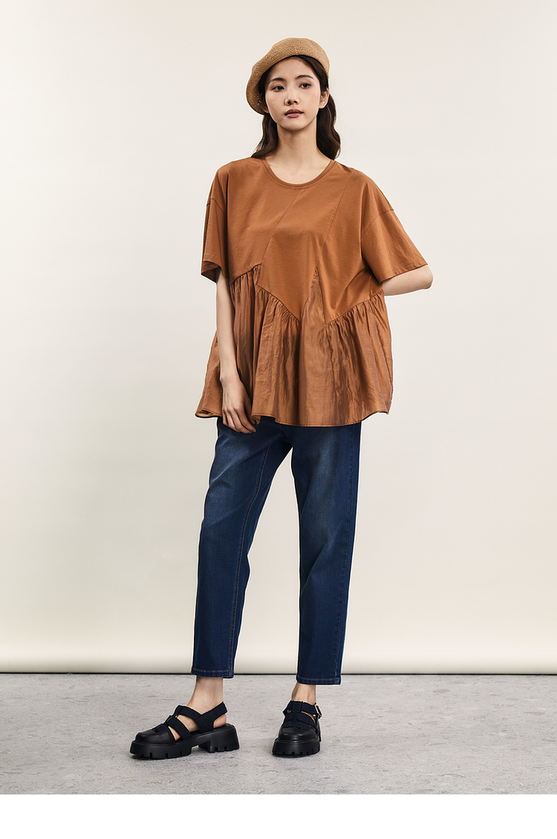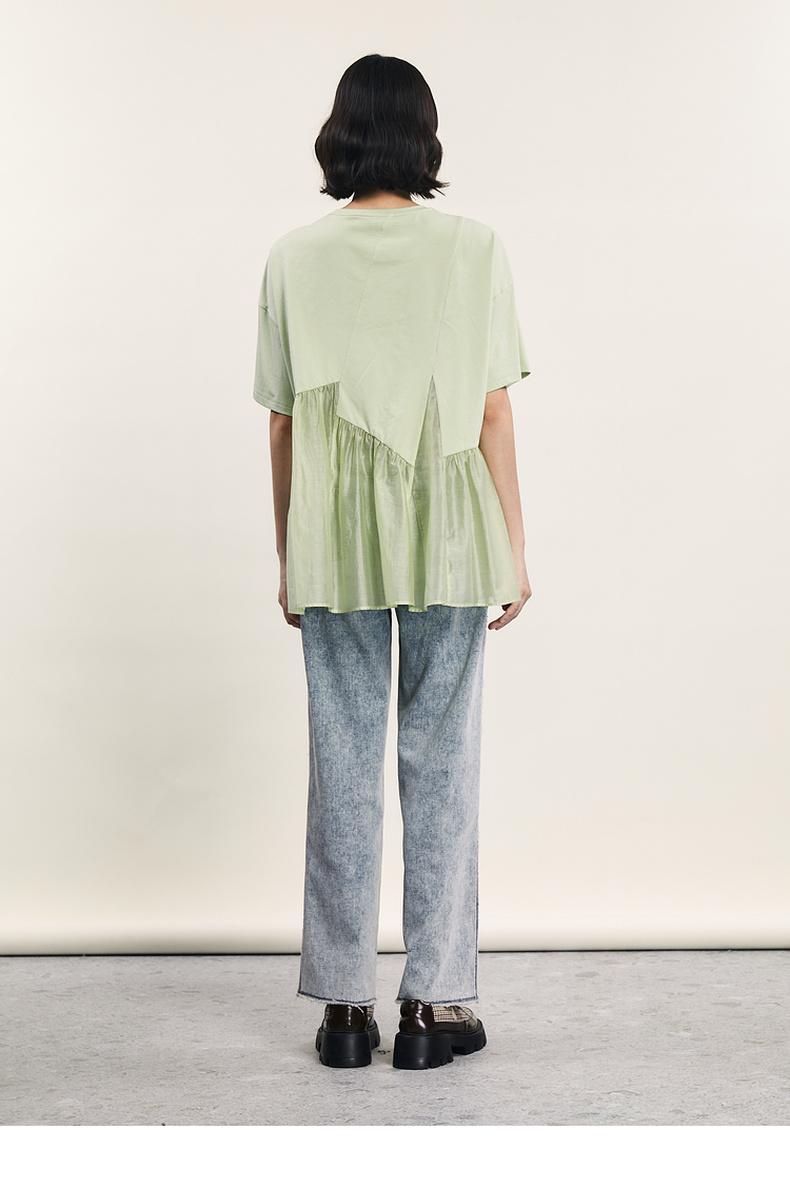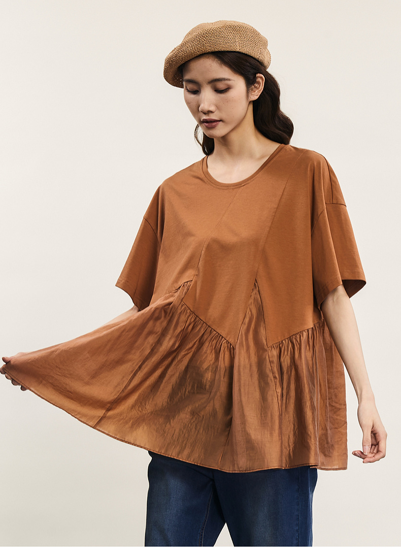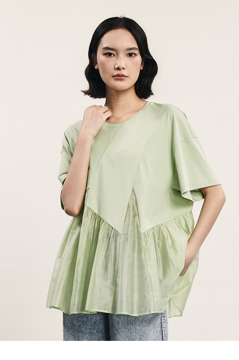 谜底宽松T恤短袖女2024夏季新品时尚拼接A型中长款上衣242MT0608