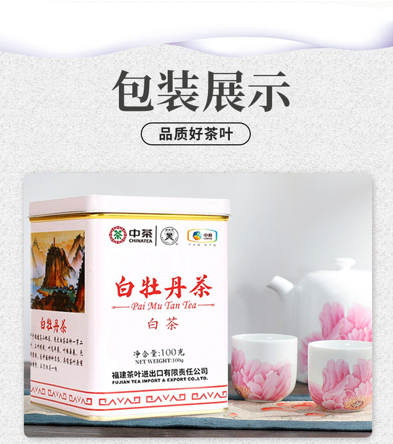 【自营】中茶 蝴蝶牌茶叶 白茶 福建白茶 口粮茶(散茶) 5101白牡丹 100g*2