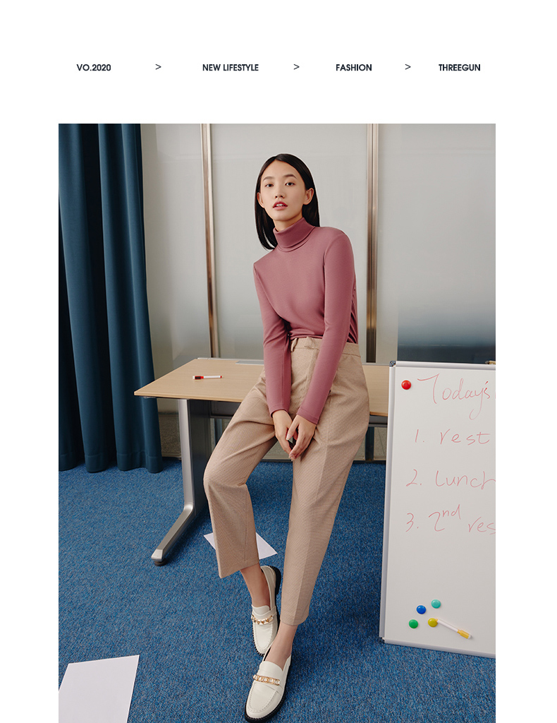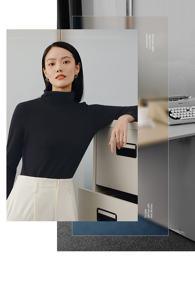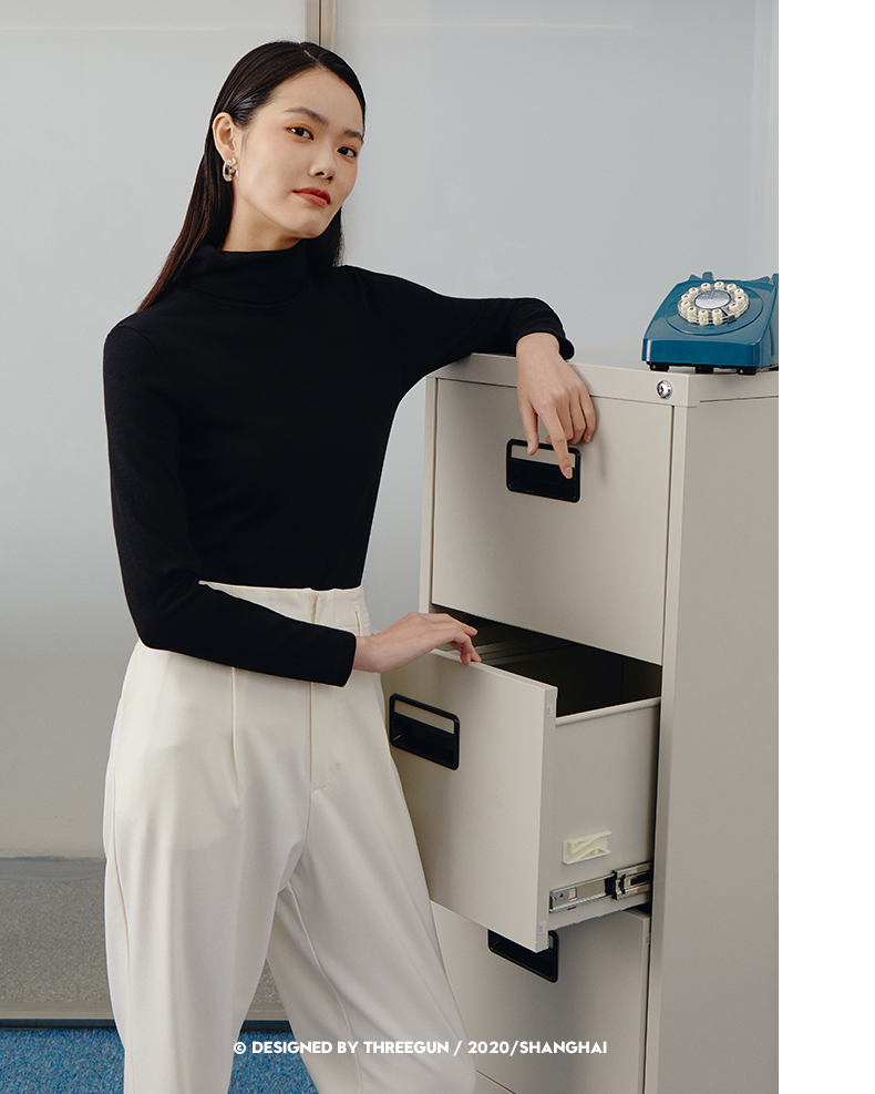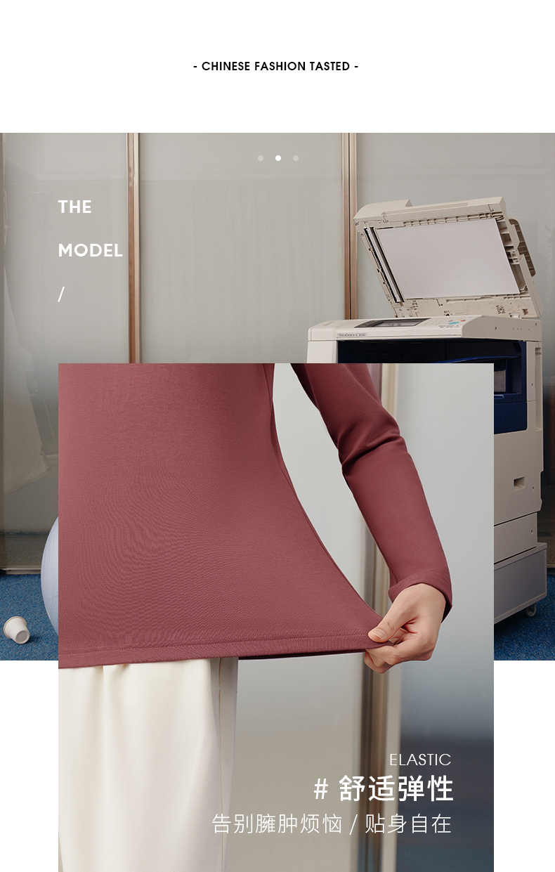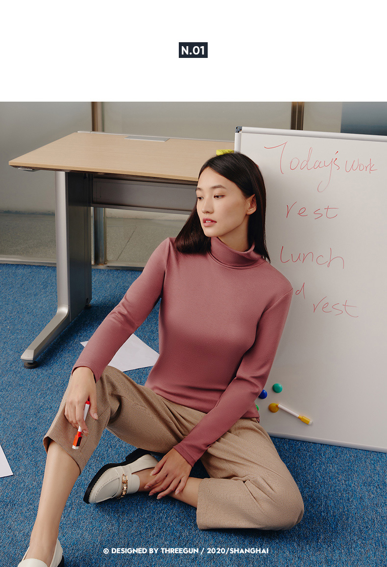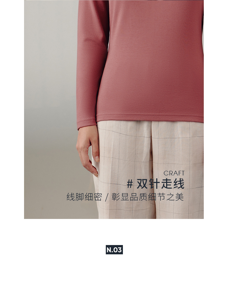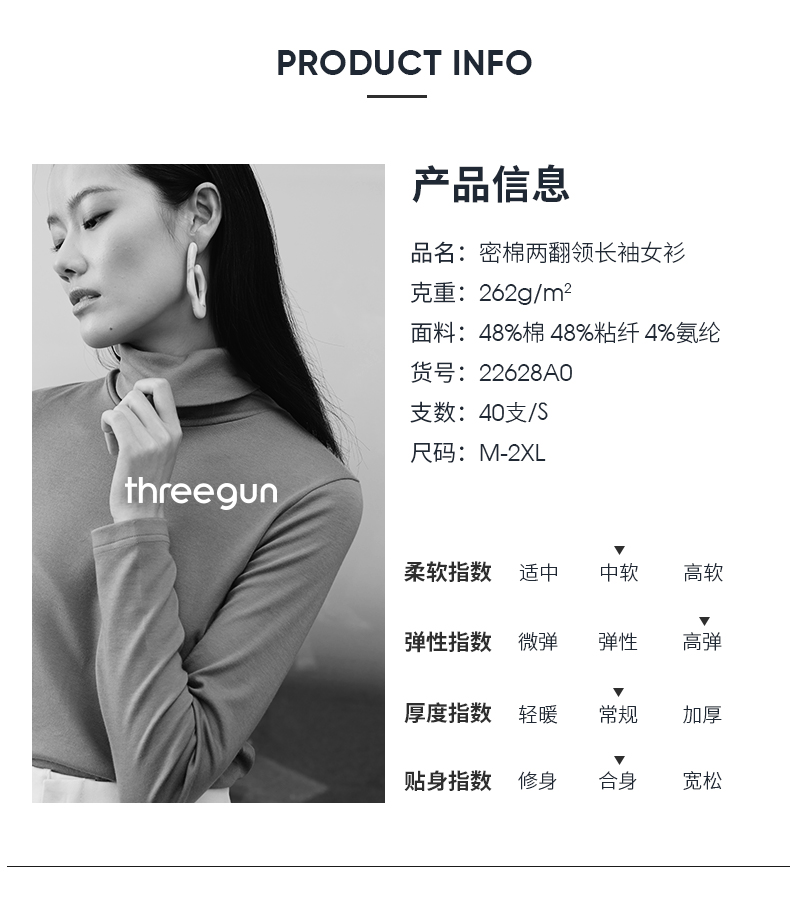 Threegun三枪 【爽滑密棉】休闲两翻领女士长袖上衣打底衫-22628A911