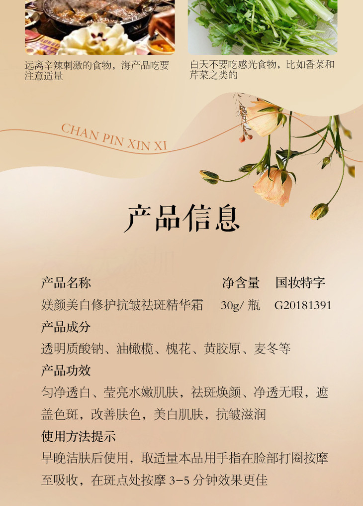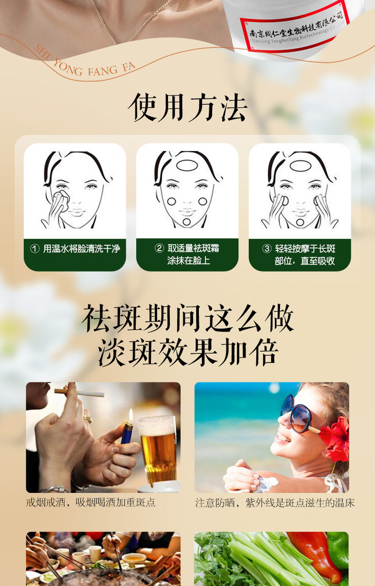 南京同仁堂媄颜美白去角质素祛斑精华霜淡斑色斑去斑面 霜淡斑点霜30g