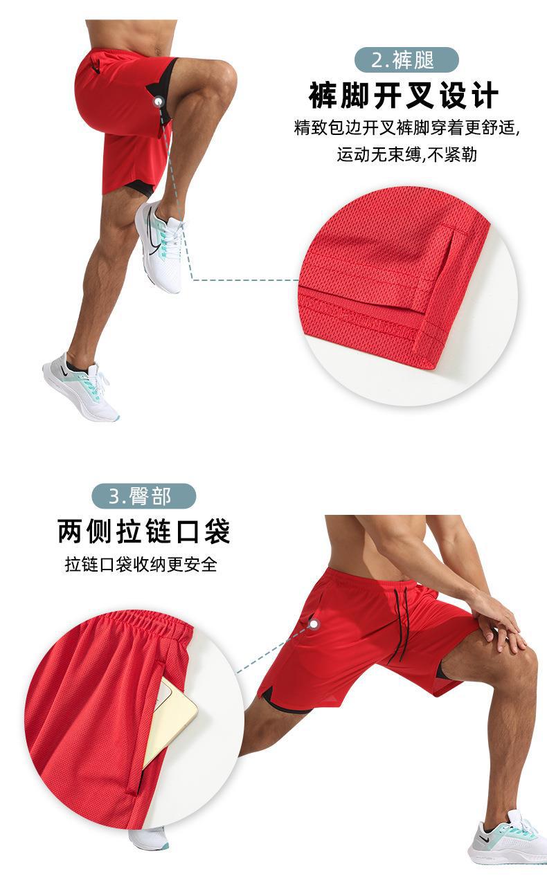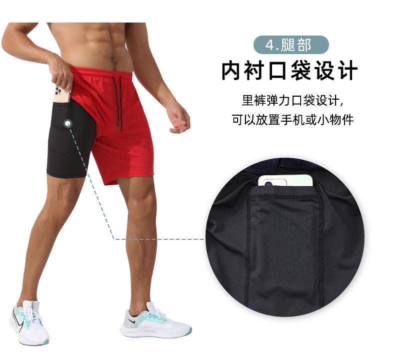 夏季运动速干五分男士短裤短裤宽松双层假两件