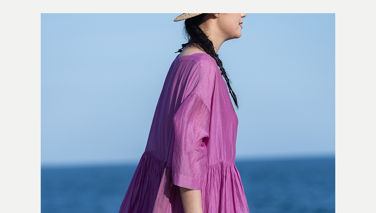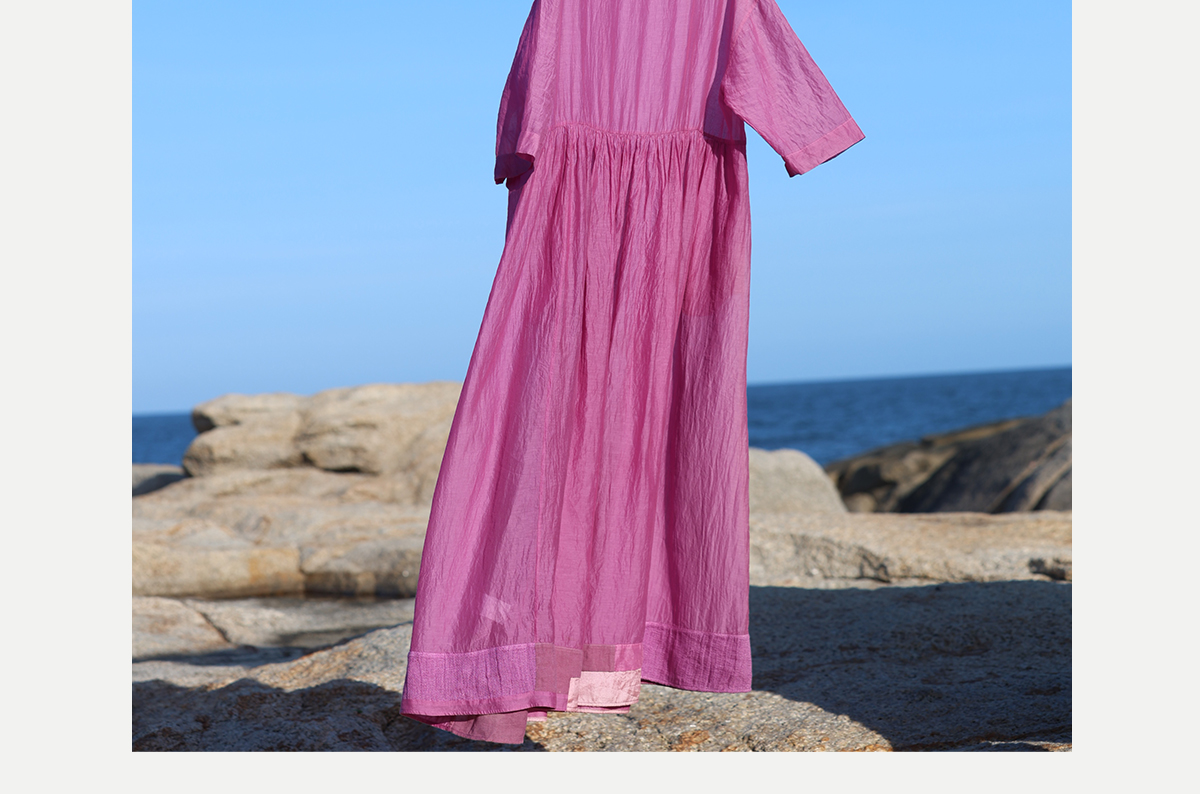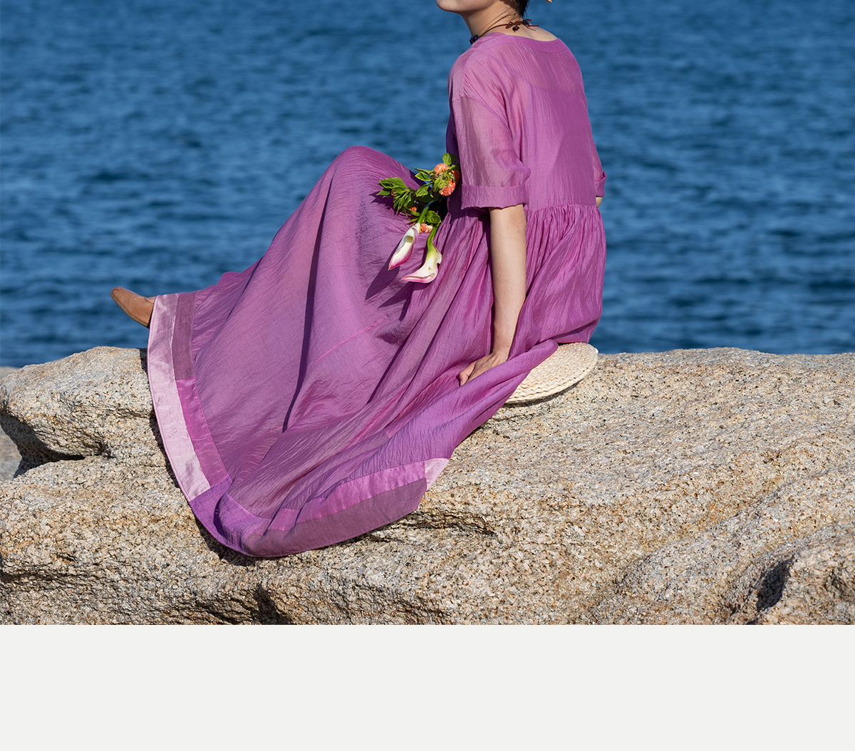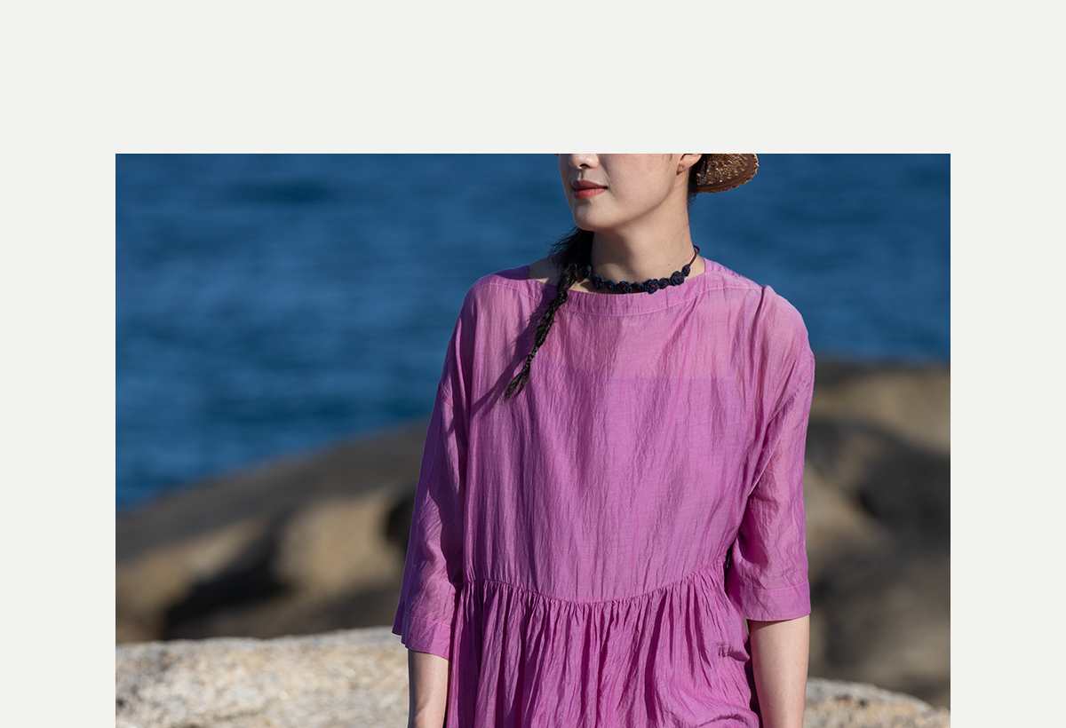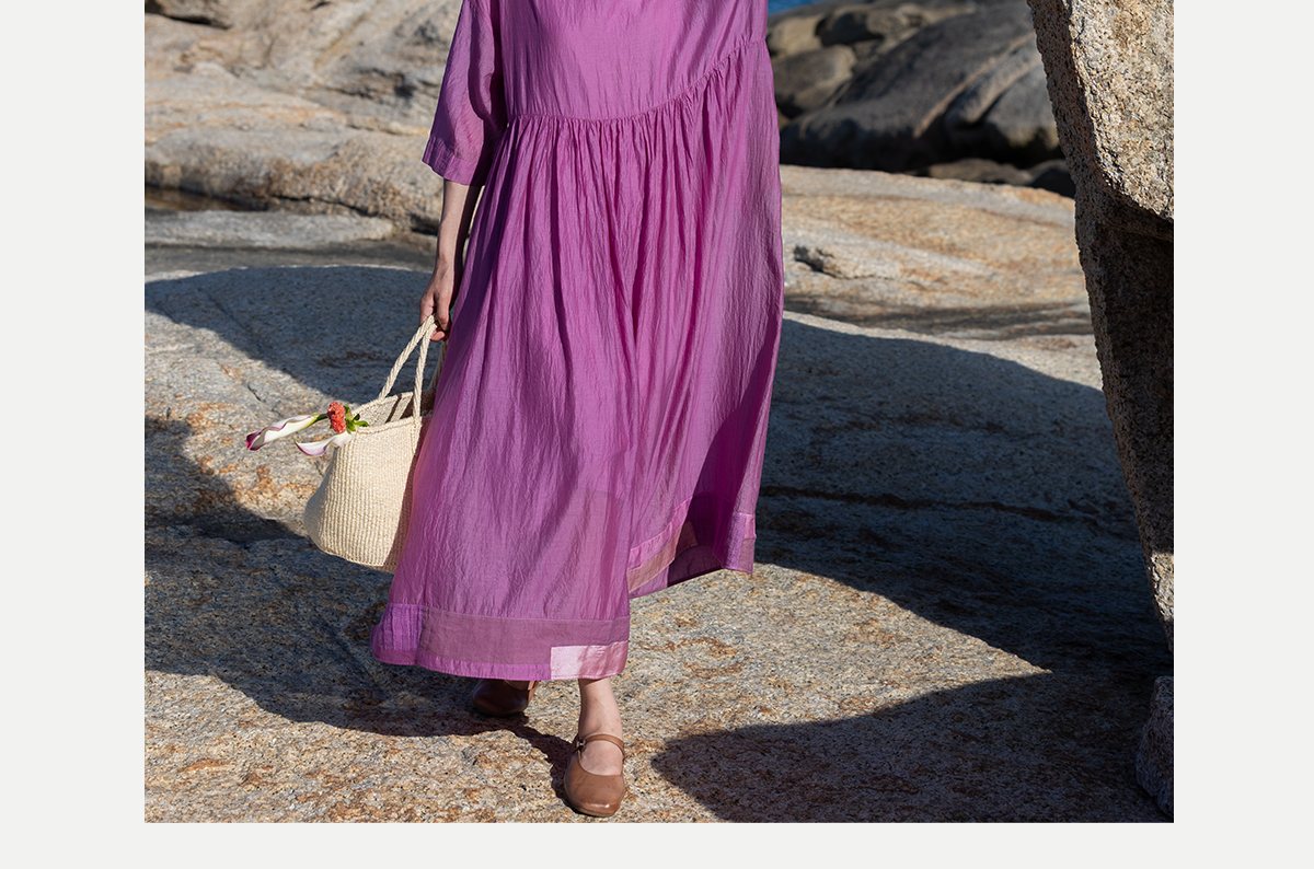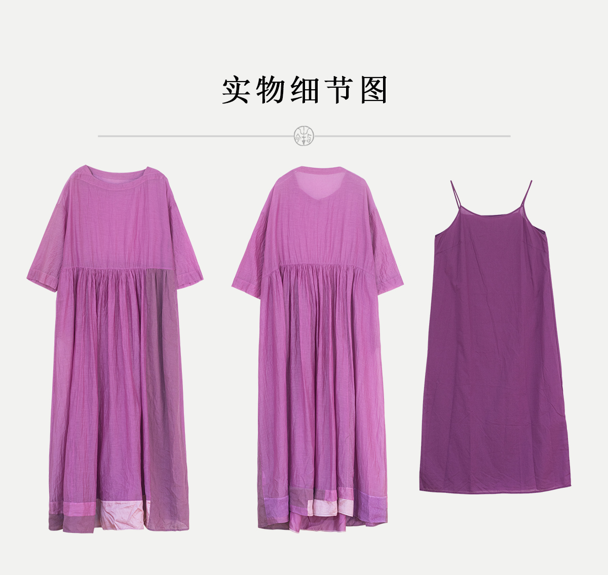 牧衣游原创 丝棉拼接连衣裙新款轻薄质朴设计感文艺宽松长裙 不桐