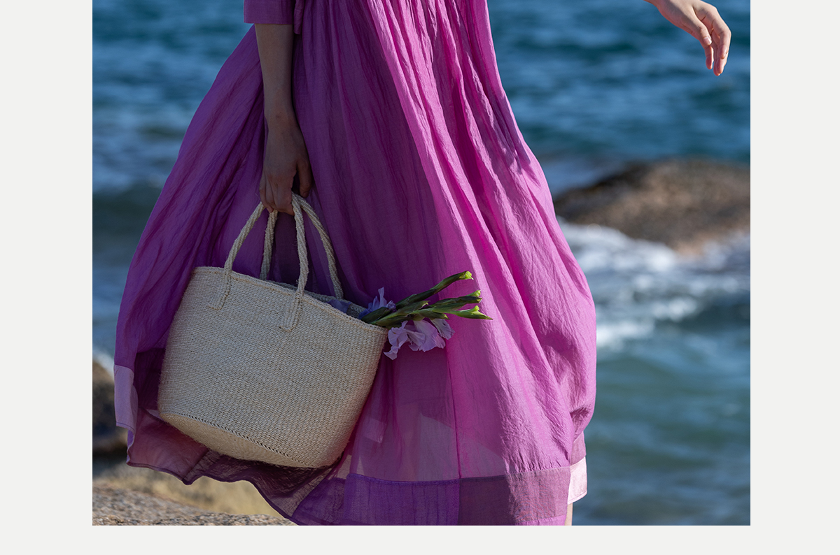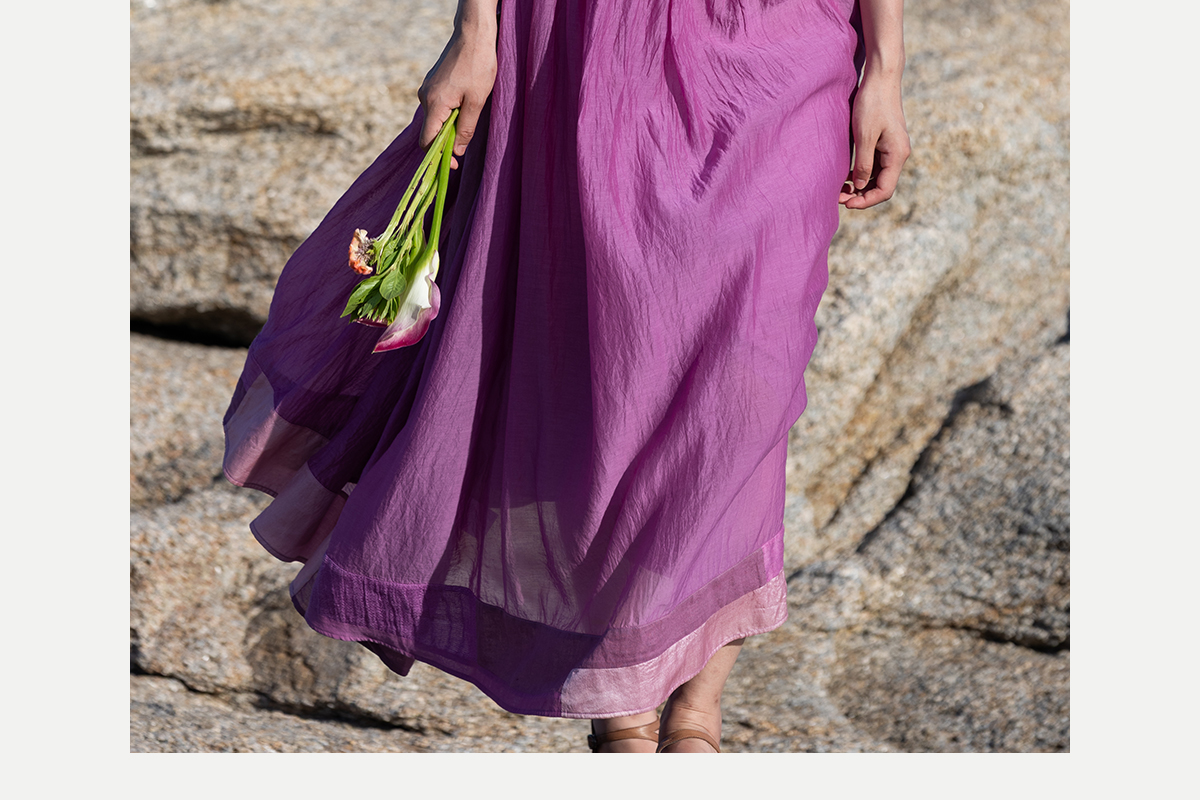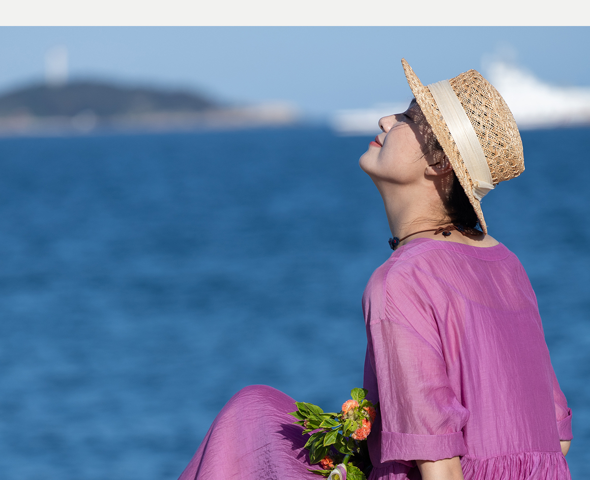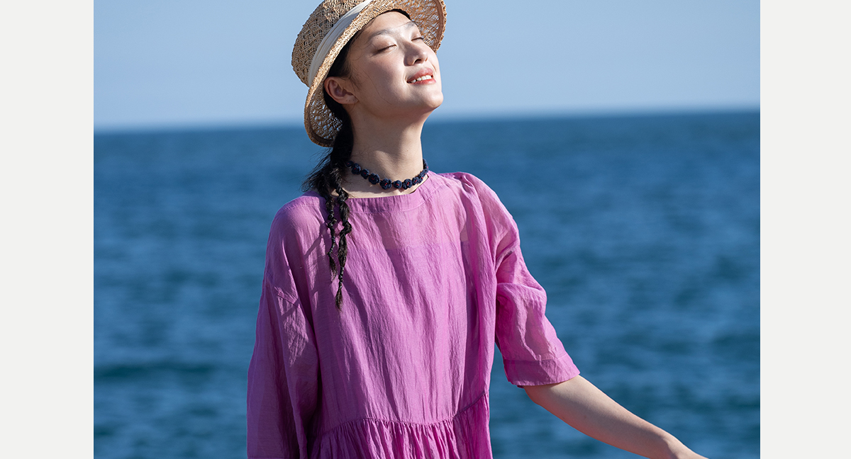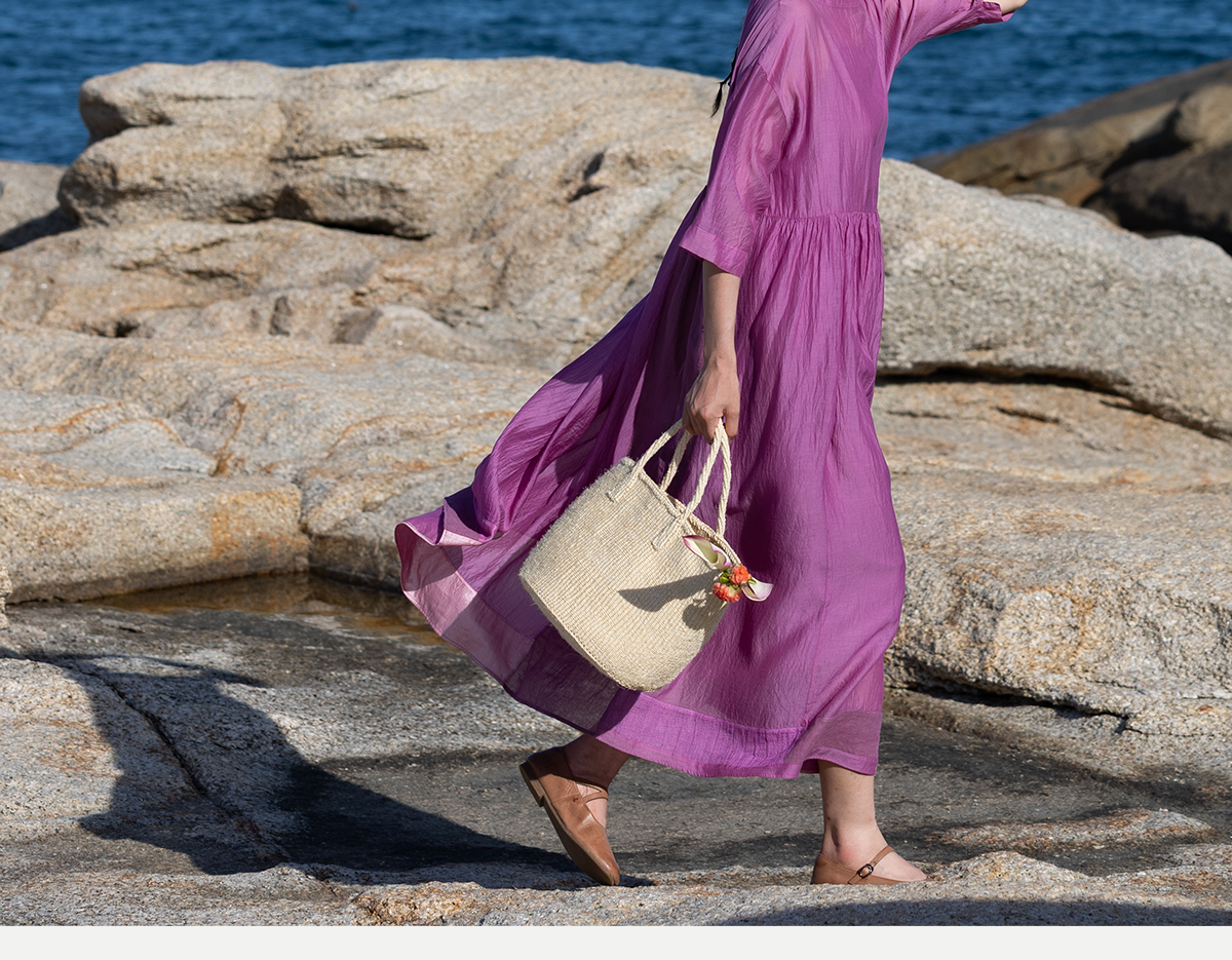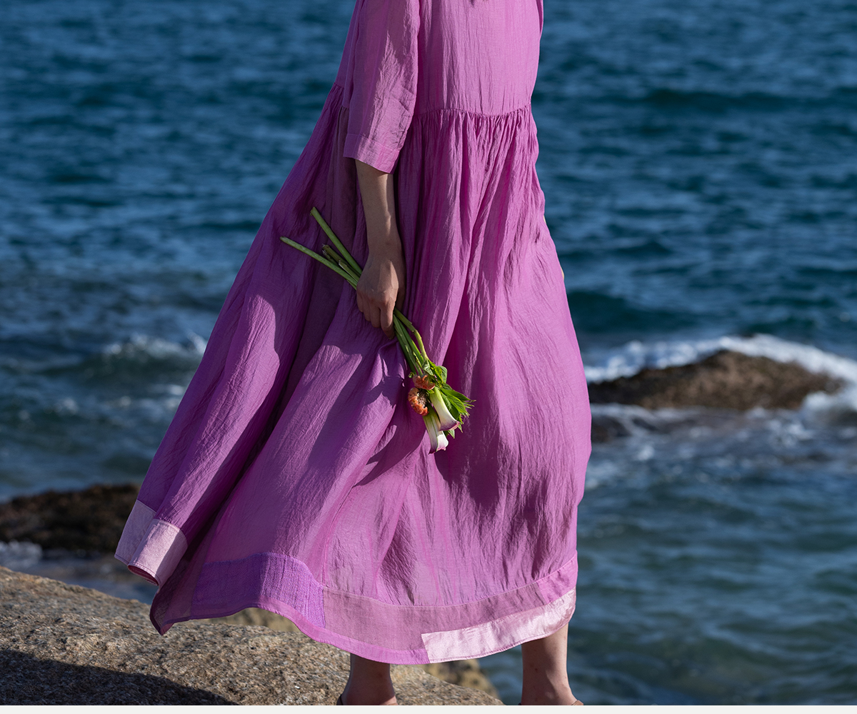 牧衣游原创 丝棉拼接连衣裙新款轻薄质朴设计感文艺宽松长裙 不桐