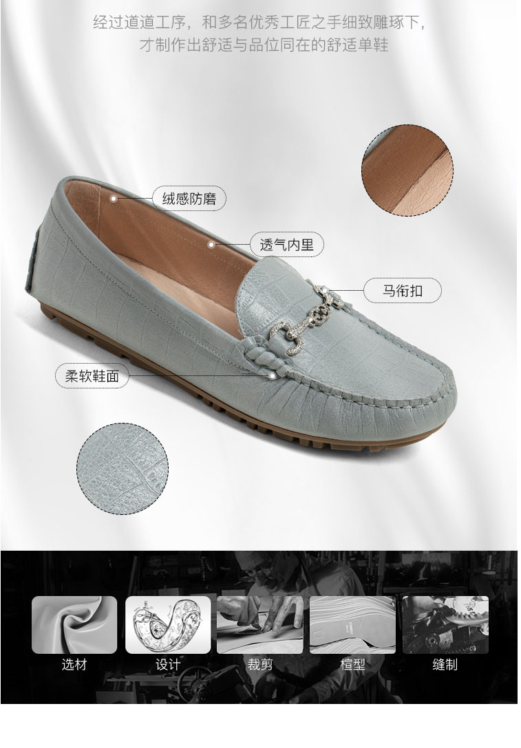 康莉真皮乐福鞋女软皮舒适中口一脚蹬软皮懒人鞋KJH11150