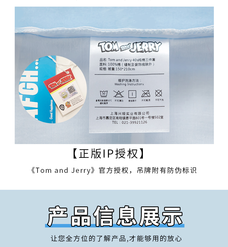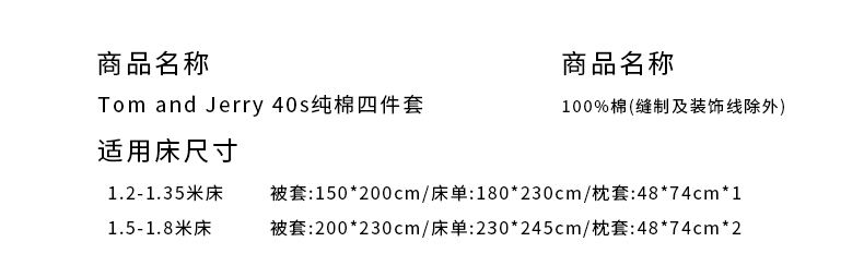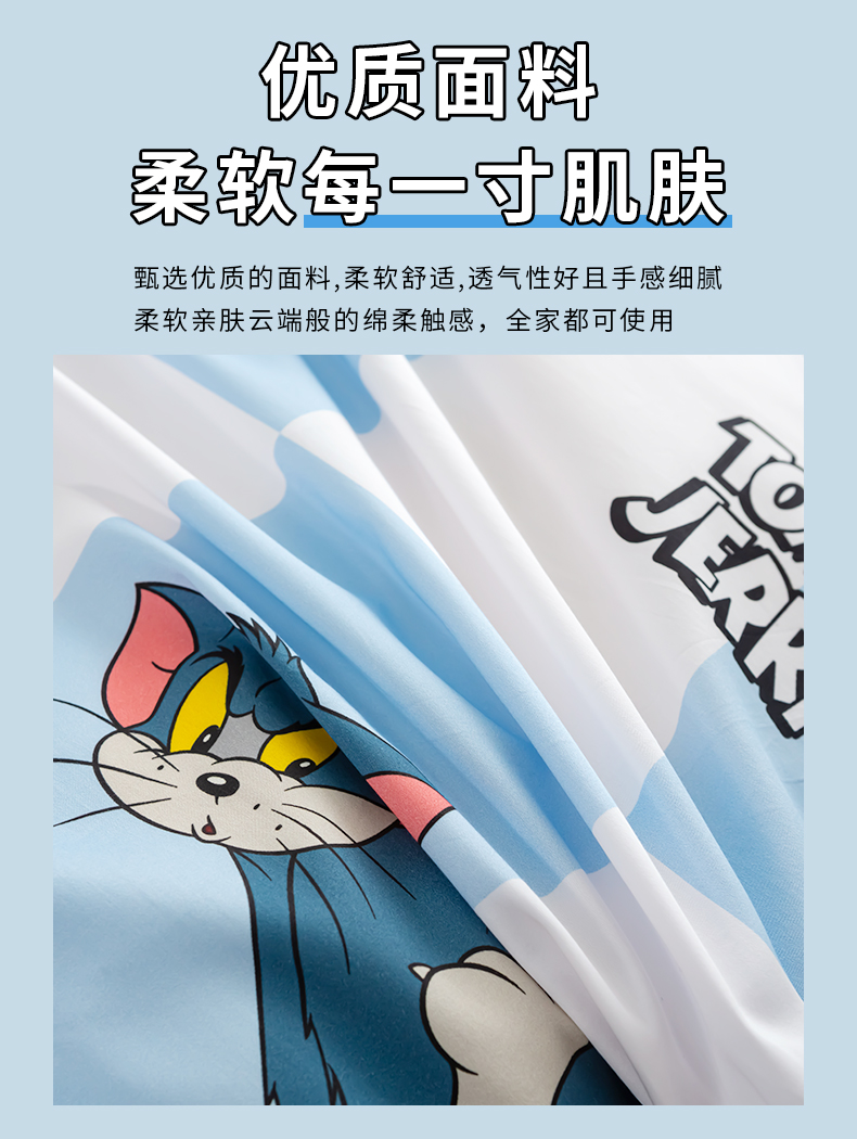 【自营】 猫和老鼠Tom and Jerry 100纯棉四件套 蓝白方格 200*230cm