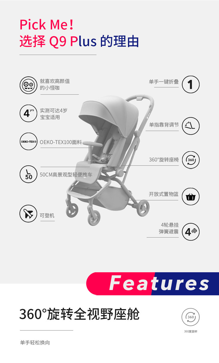 昆塔斯 德国 Qtus Q9 Q9plus婴儿推车可坐躺轻便伞车便携婴儿车