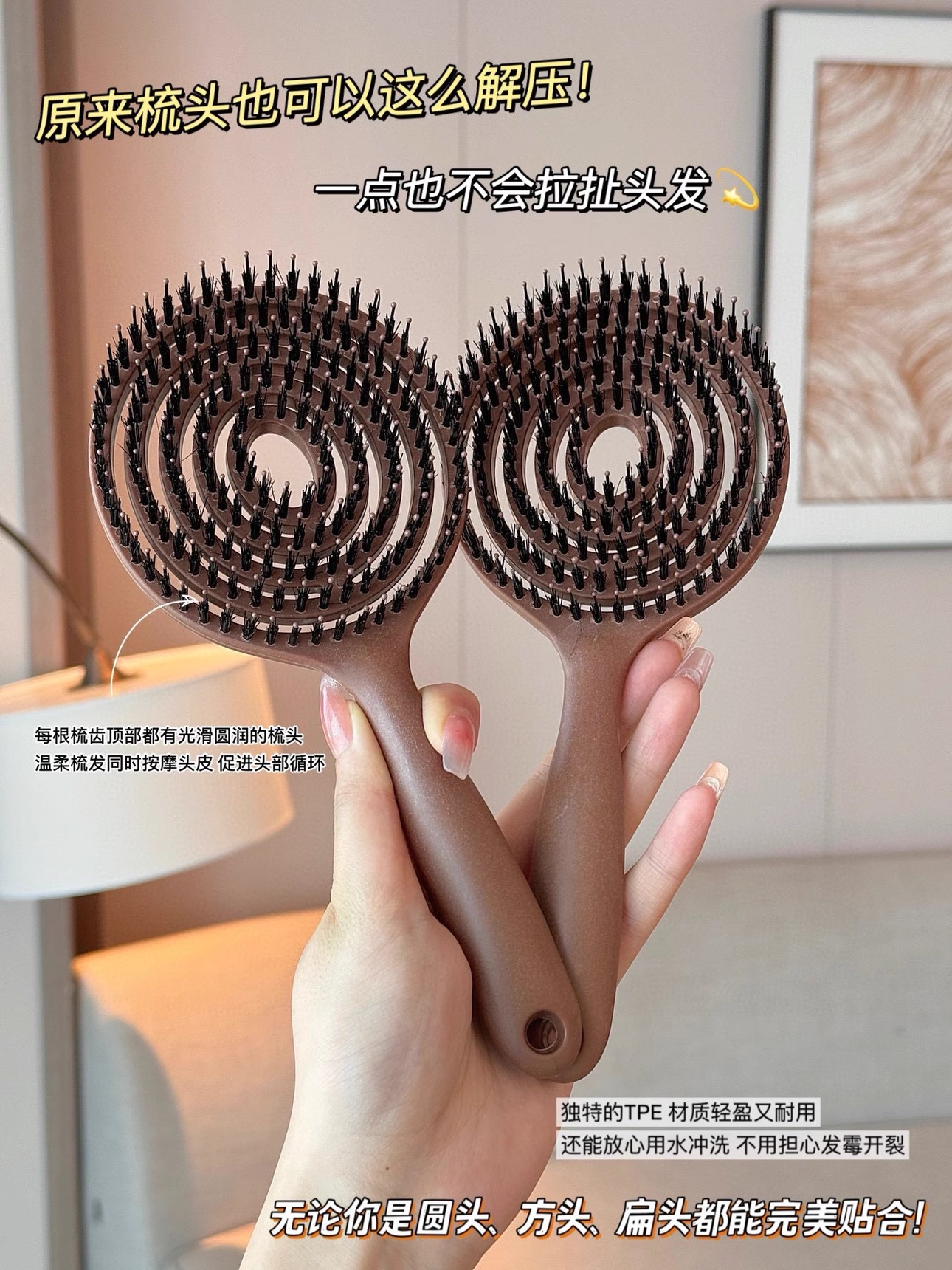 【巨好梳的梳子来啦】山姆同款镂空按摩梳韩国yao梳子 家用猪鬃毛气垫梳 女士蓬松高颅顶