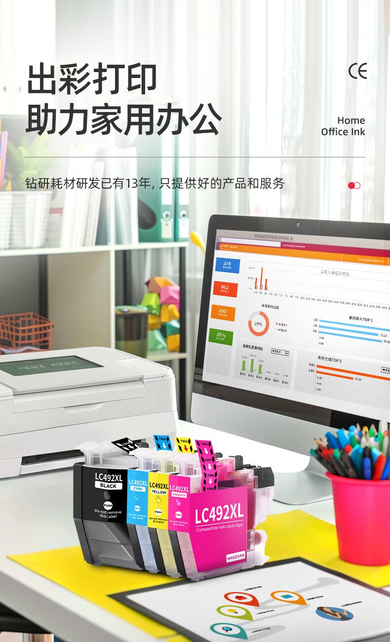 绘威适用兄弟MFC-J2340DW墨盒 Brother J2340DW彩色喷墨打印机墨盒【四色套装/7500页】