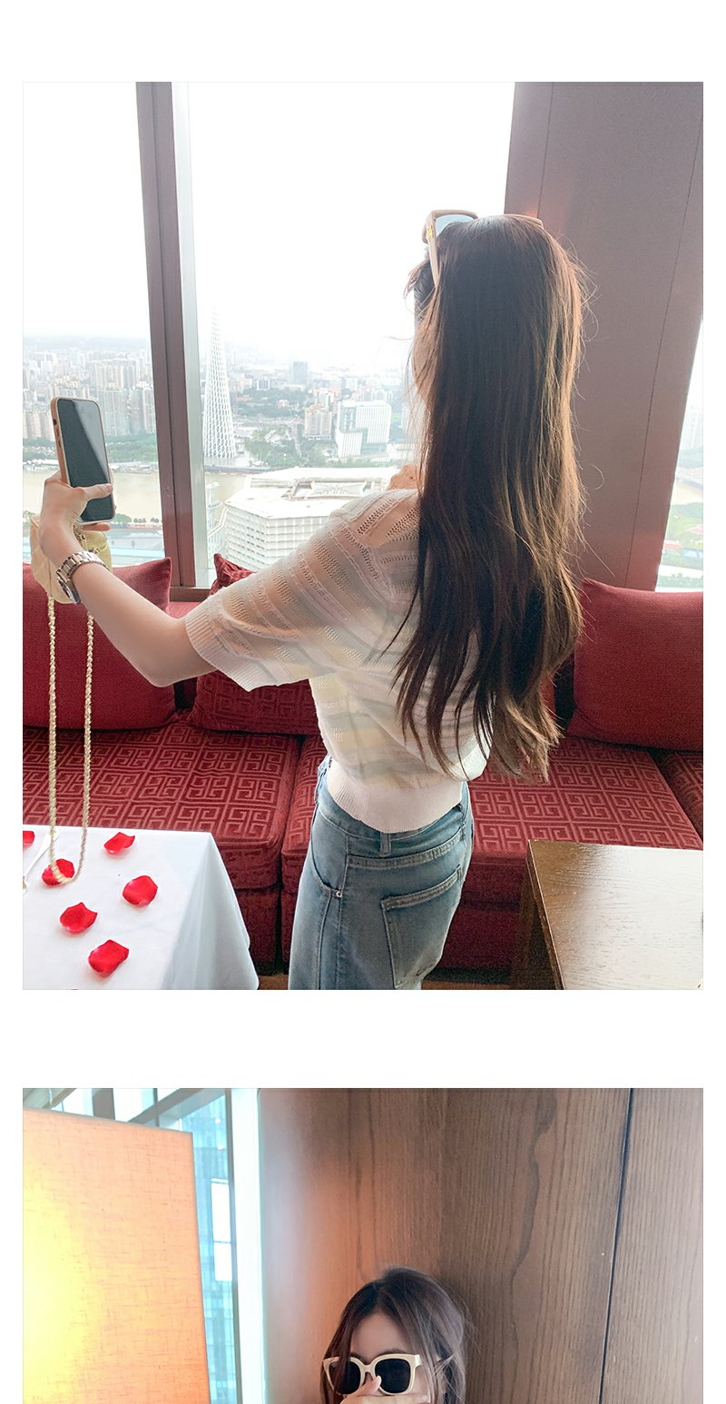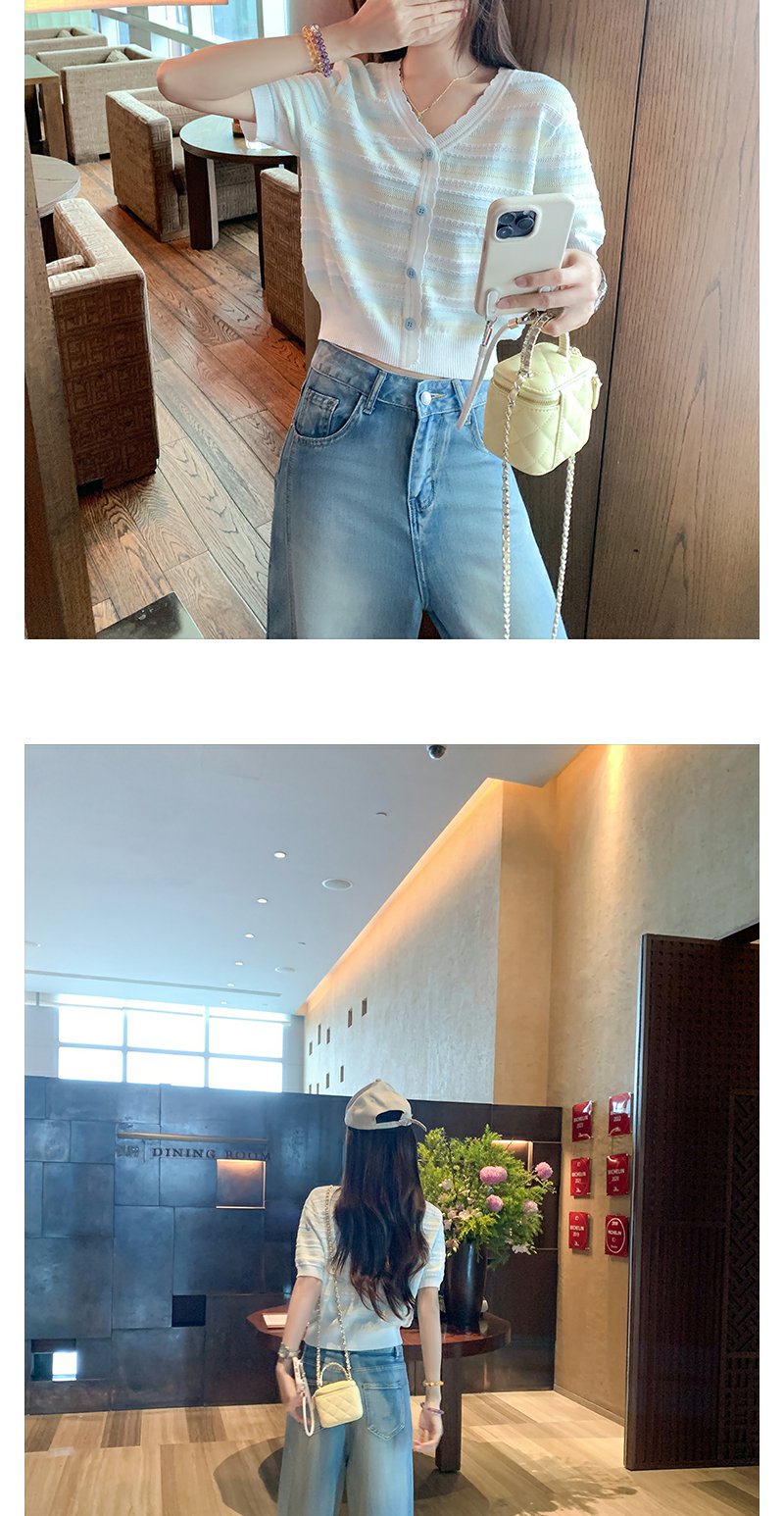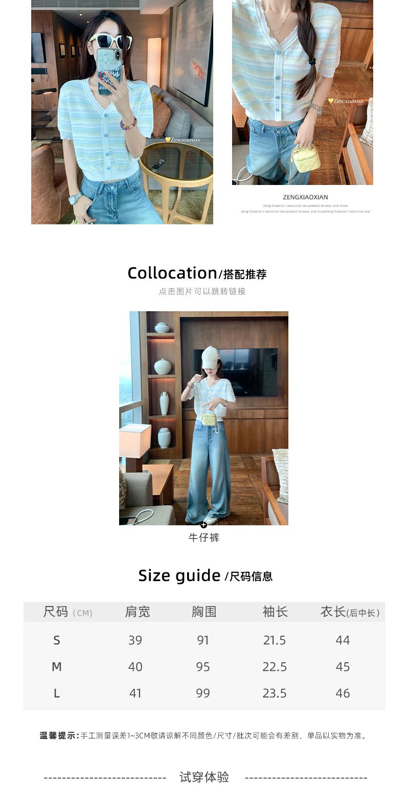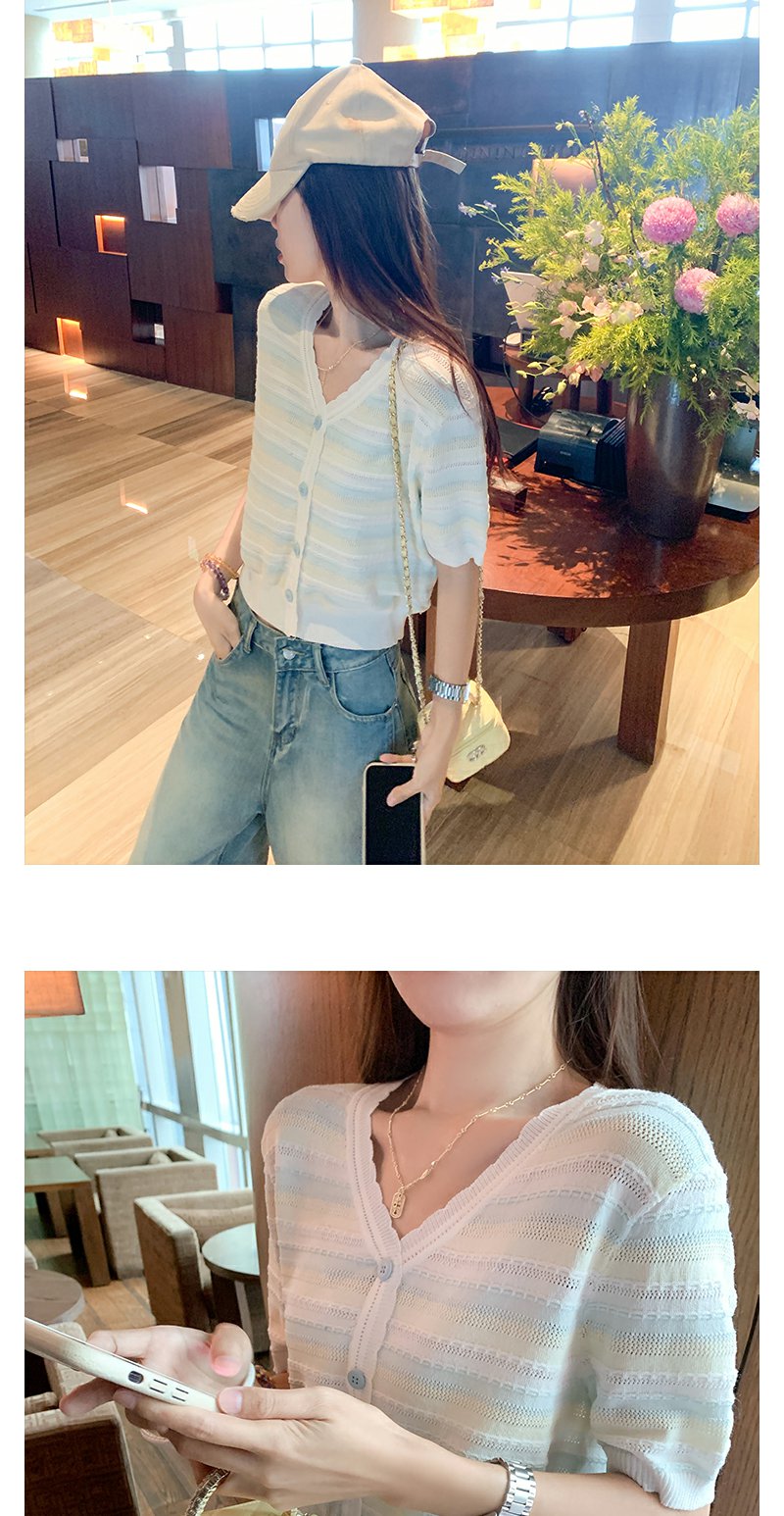 <曾小咸推荐>夏季透气短袖T恤V领条纹宽松上衣
