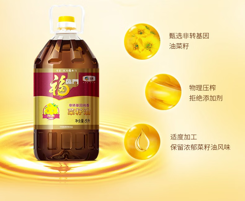 福临门非转基因纯香菜籽油5L