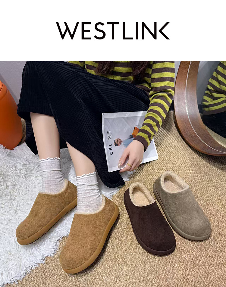 西遇一脚蹬勃肯鞋女新款冬季复古外穿毛毛鞋保暖加绒雪地靴K0057321