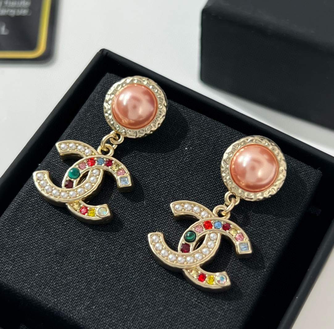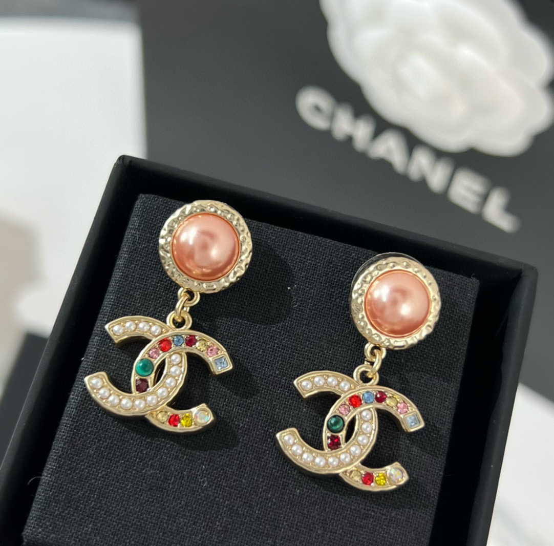 新款☑️CHANEL香奈儿双c彩色珍珠耳钉耳环