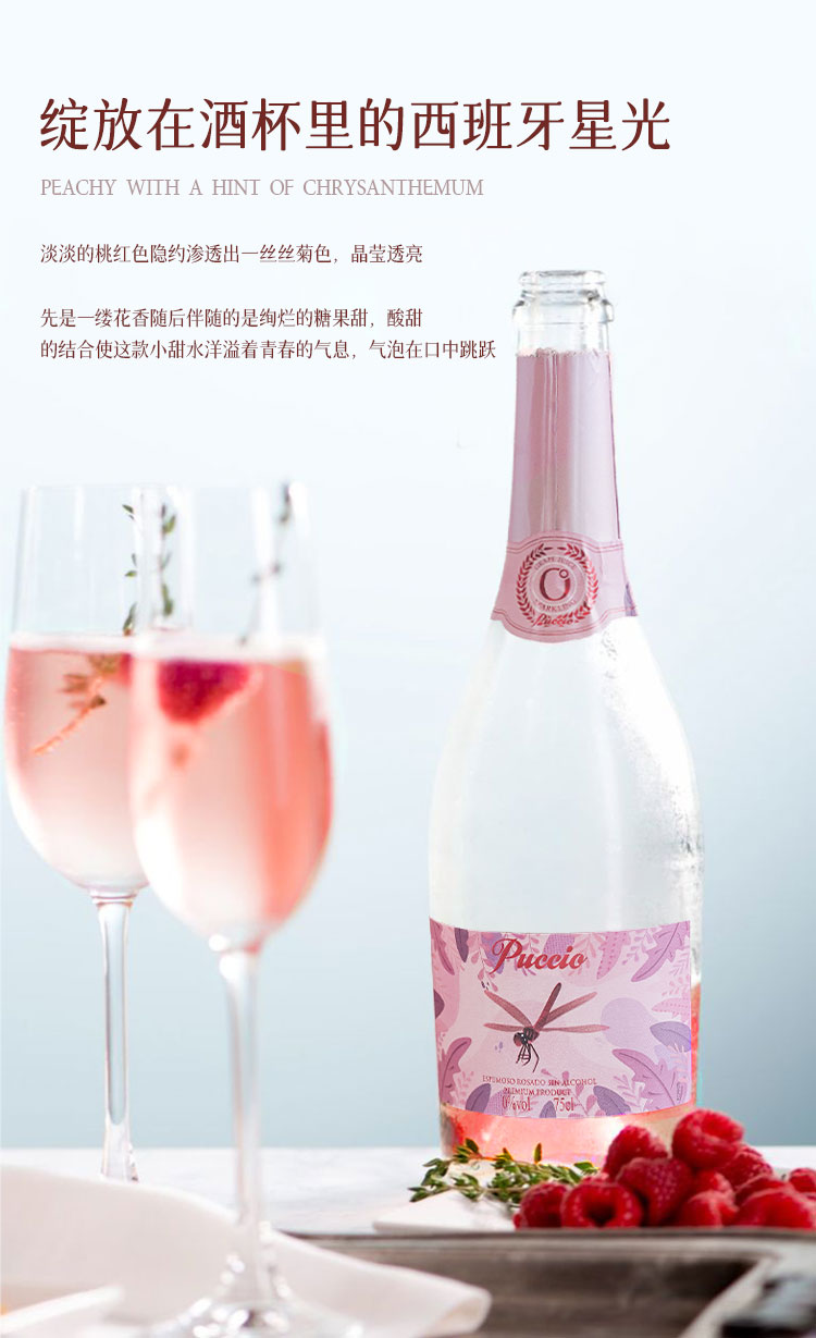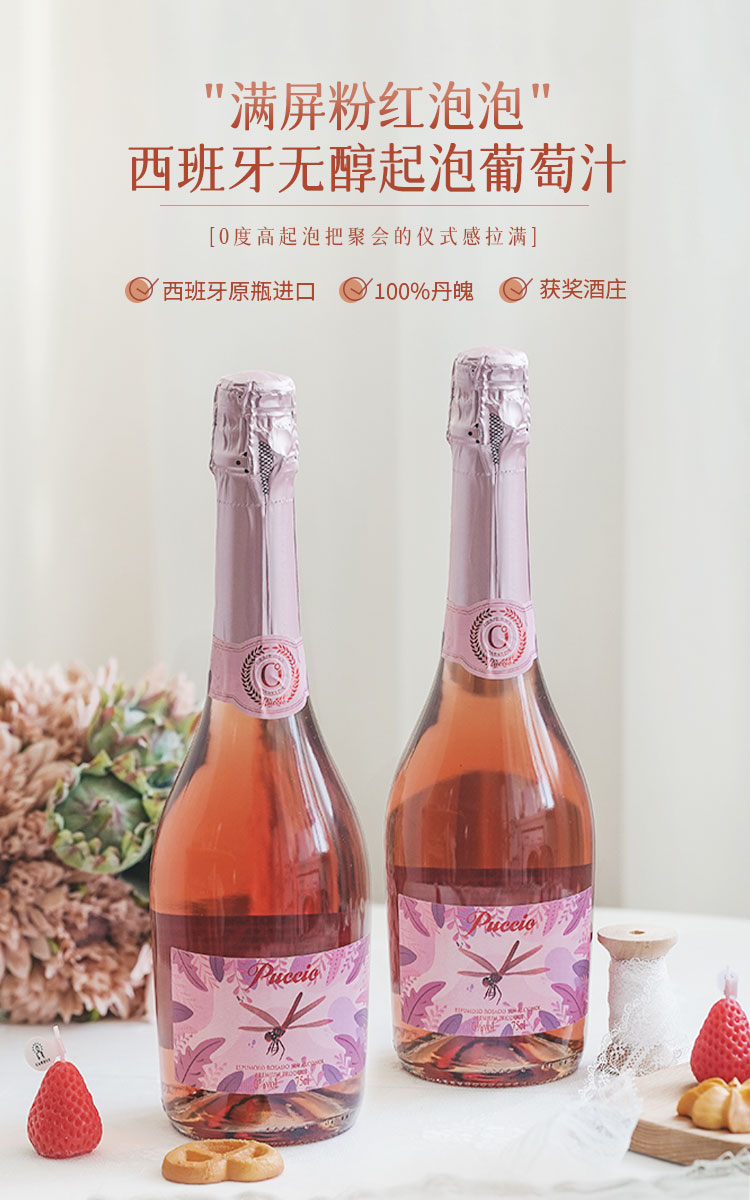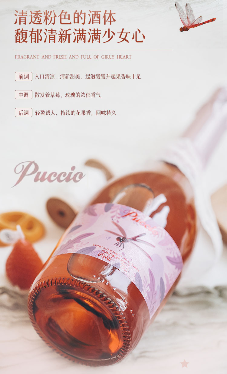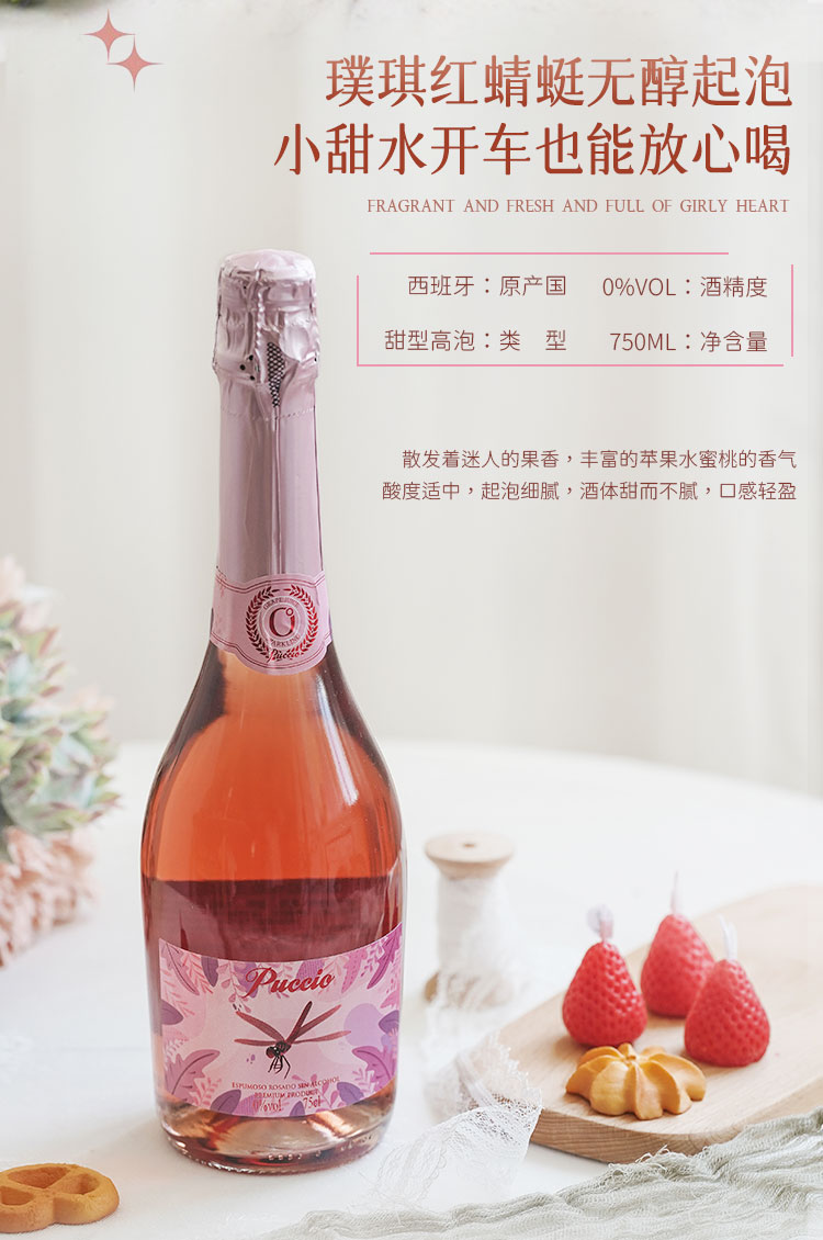 【网红爆款·玫瑰蜜桃香】Puccio红蜻蜓无醇起泡葡萄酒 西班牙原瓶进口 0%vol