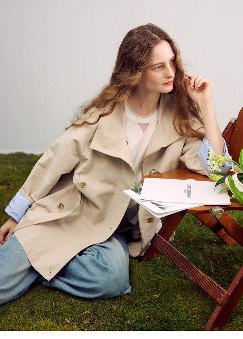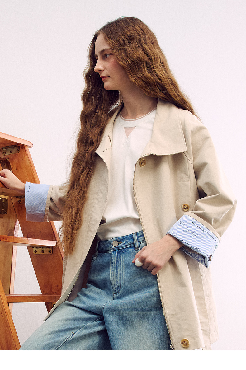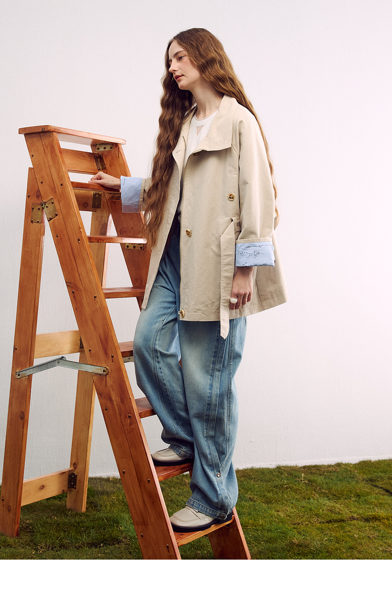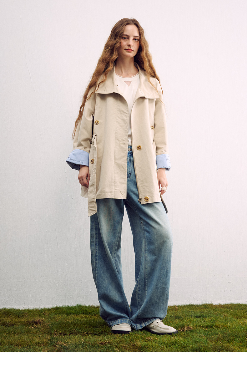 谜底廓形风衣长袖2026春季新品插肩袖撞色拼接长外套女261ME0032