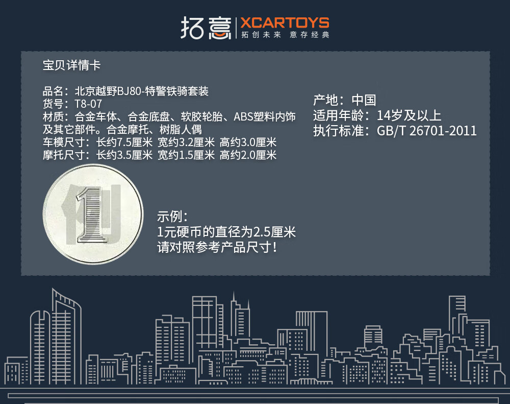 拓意 T8-07 BJ80特警套装(BJ80越野车+特警摩托+特警人偶)