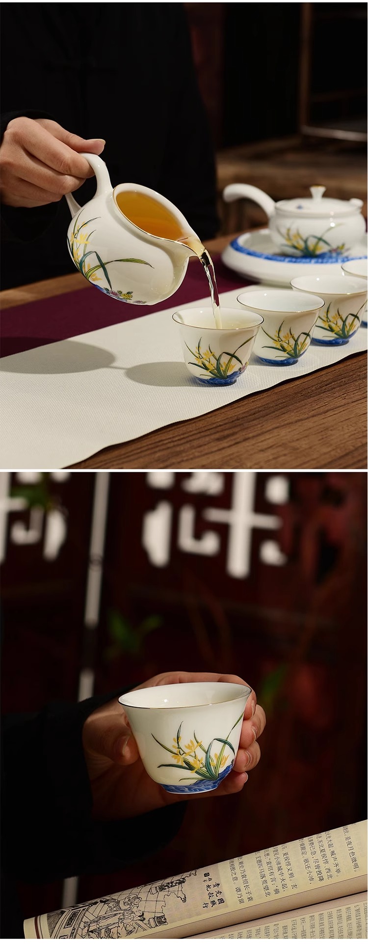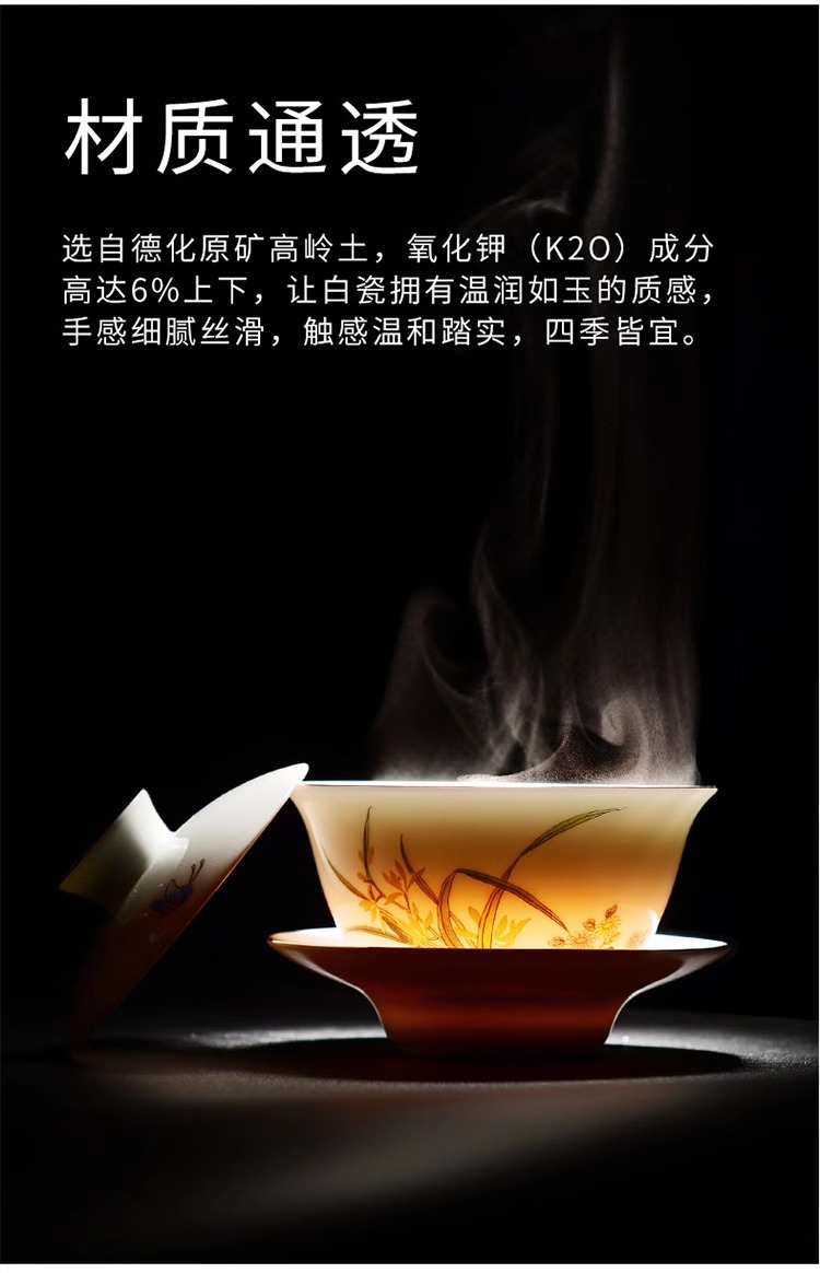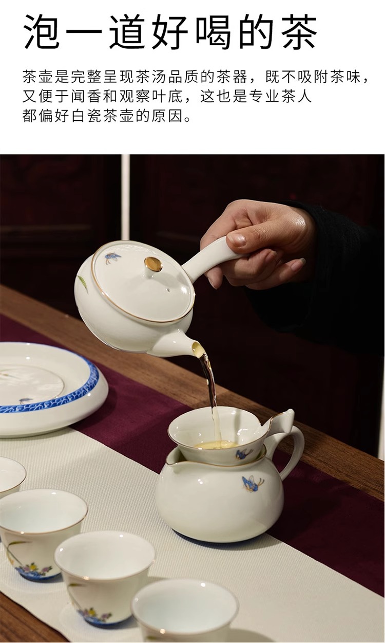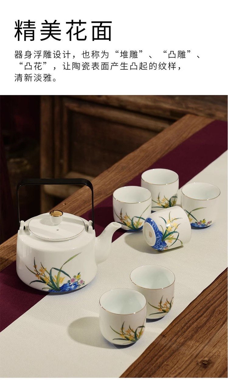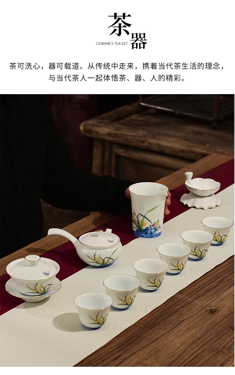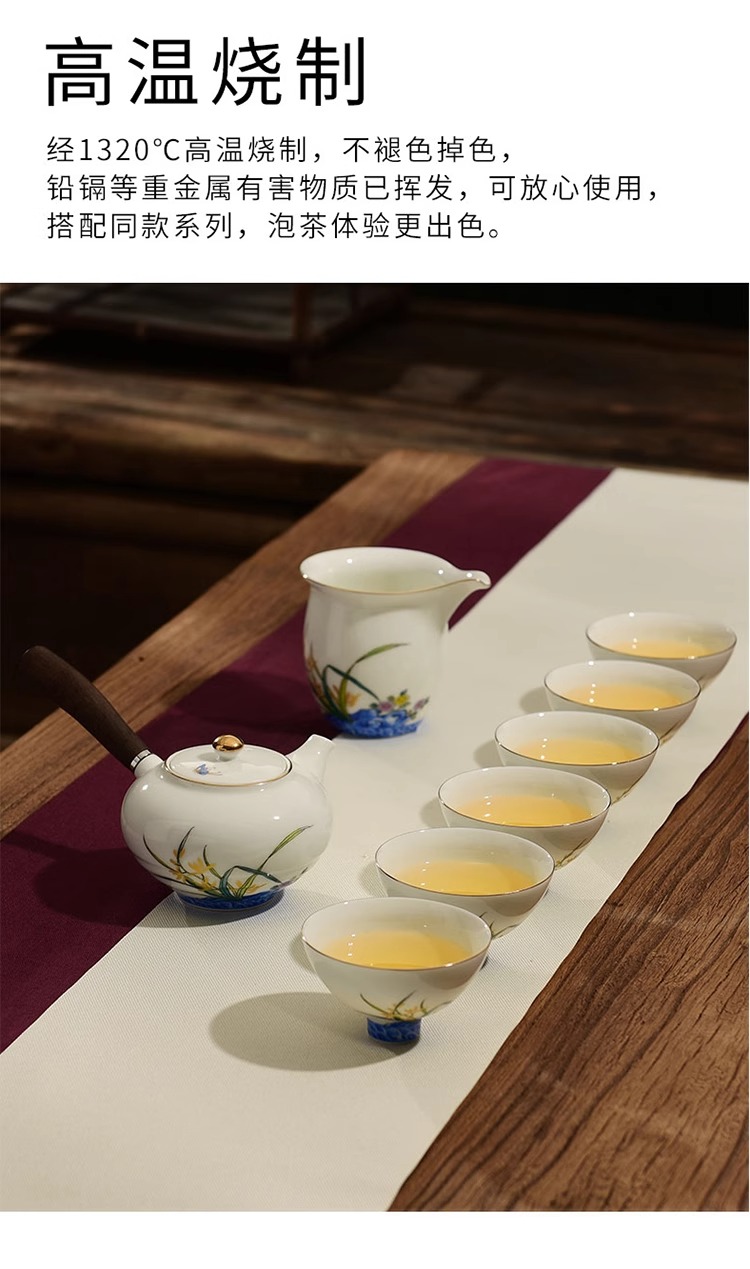 【特惠6折】高温白瓷兰花品茗杯陶瓷茶杯功夫茶具男主人杯手绘盖碗茶壶茶配件成艺兰有香缘心侧把壶16入