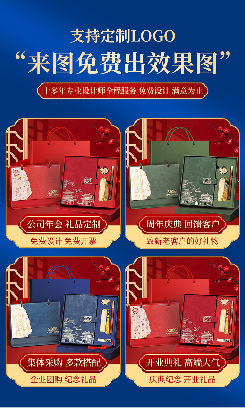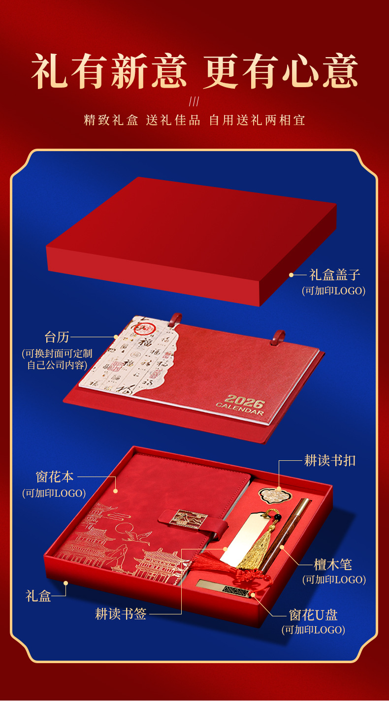 2026年台历礼盒套装定制马年高档笔记本套盒商务送礼佳品可印logo