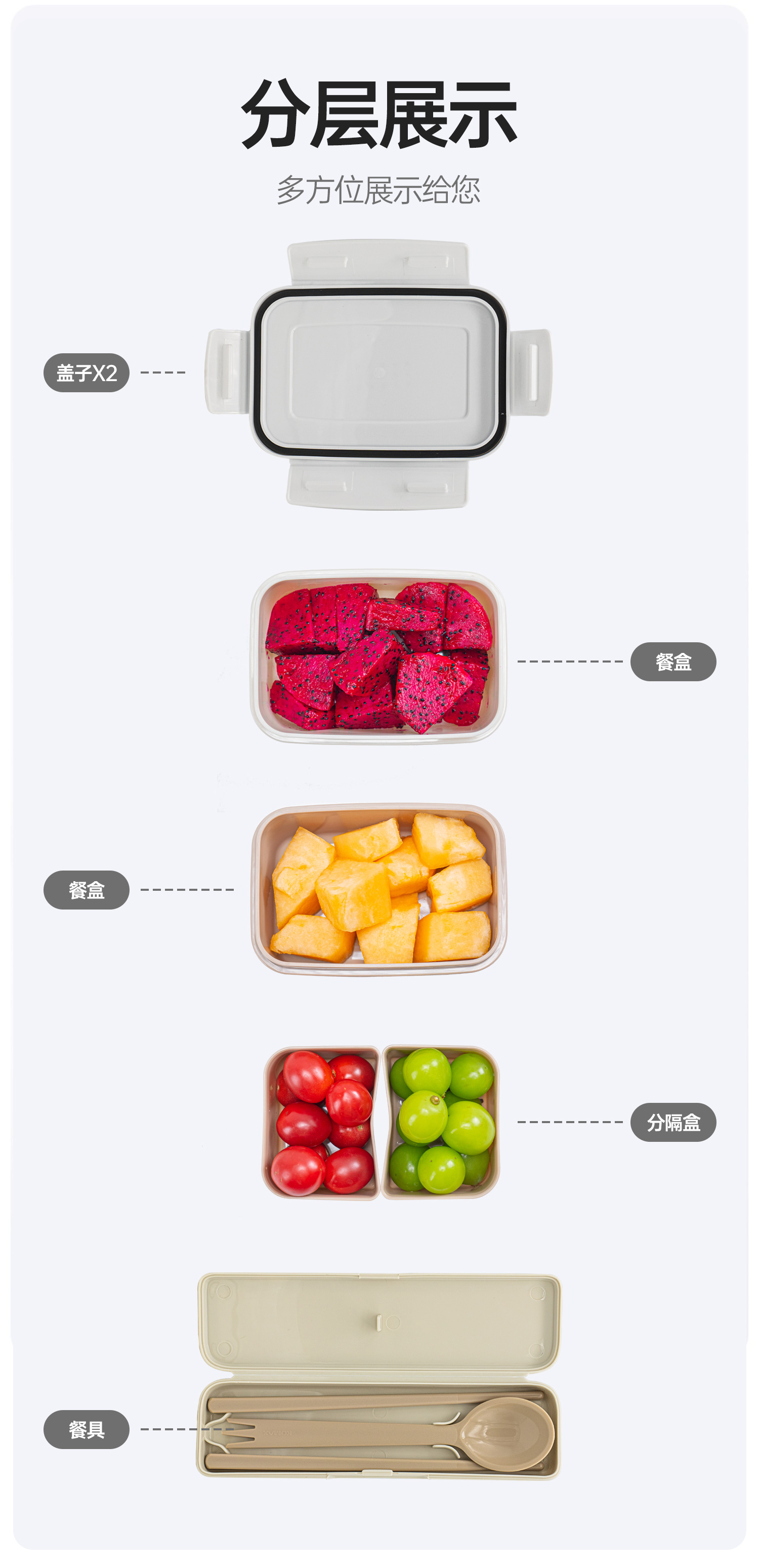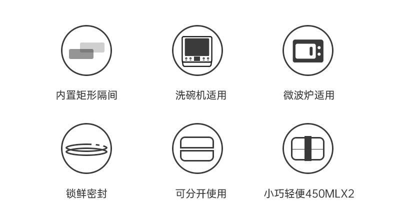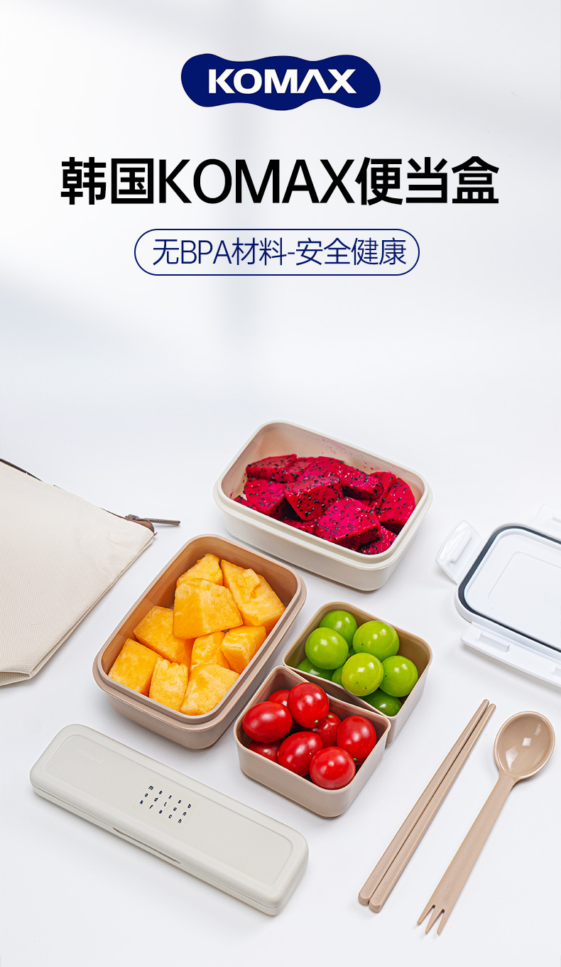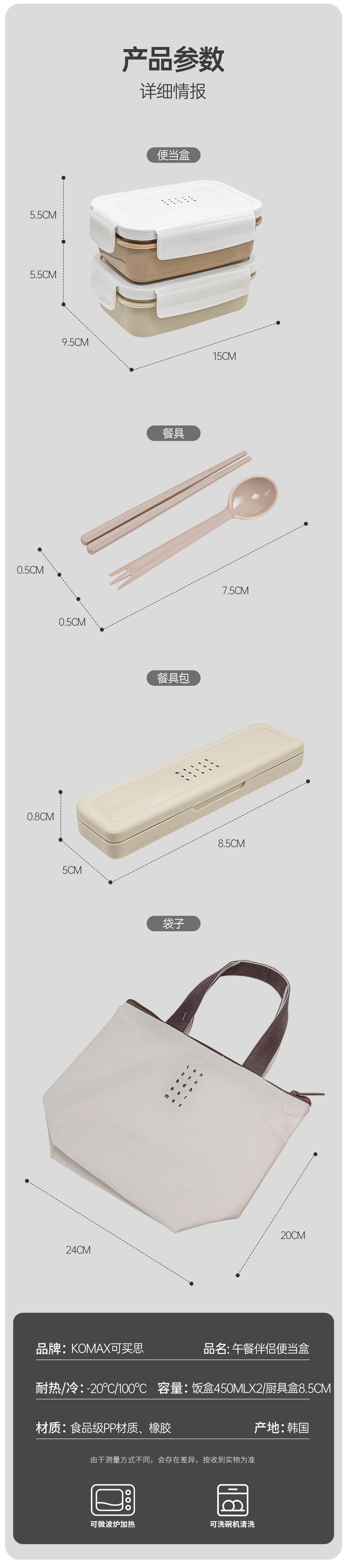 韩国可买思午餐盒四件套(餐盒450ml*2+筷子*1+收纳包*1)