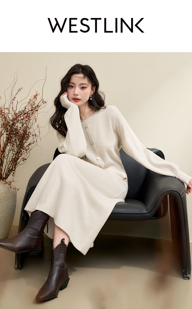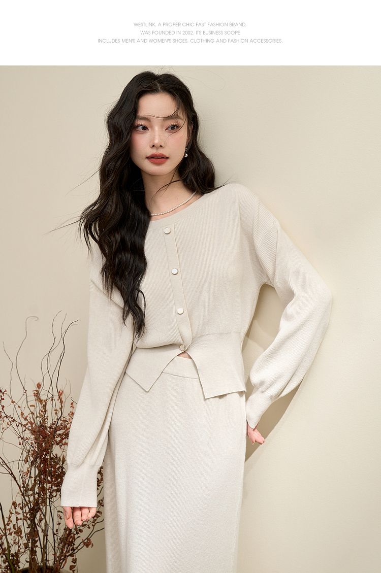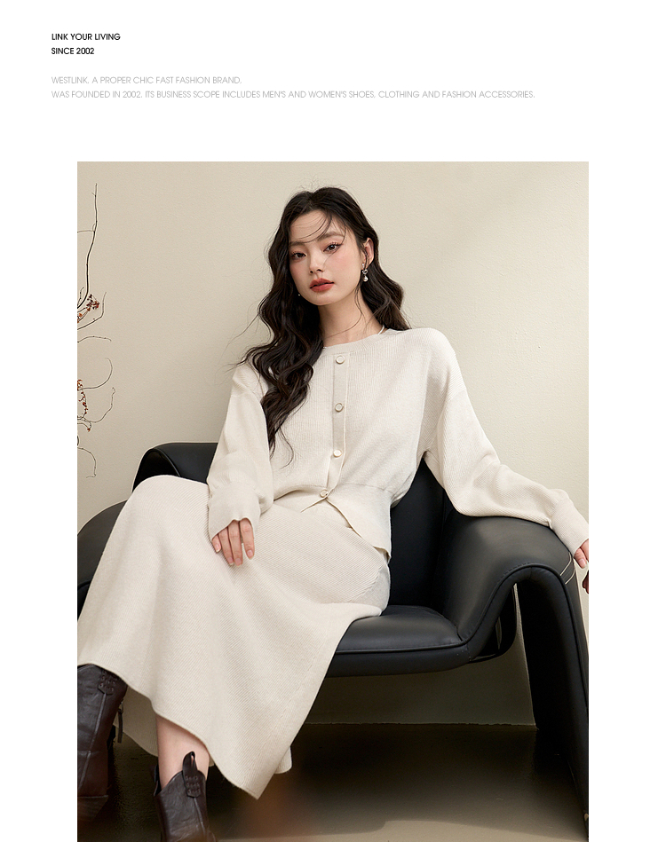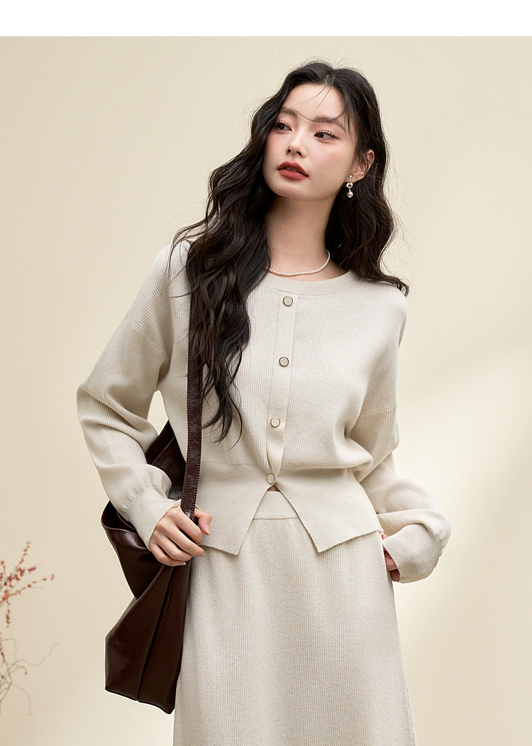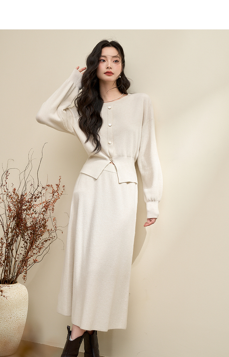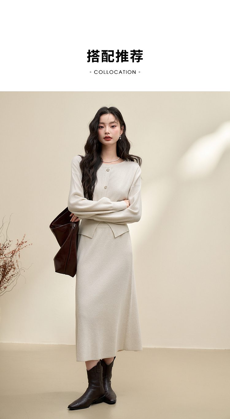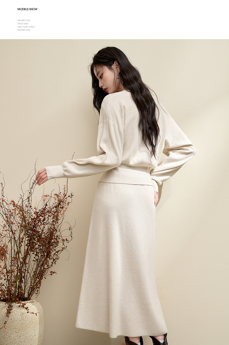简约气质温柔高级感套装女秋季针织衫搭高腰半裙两件套V3742537