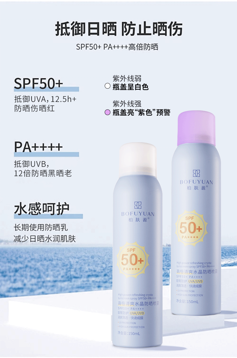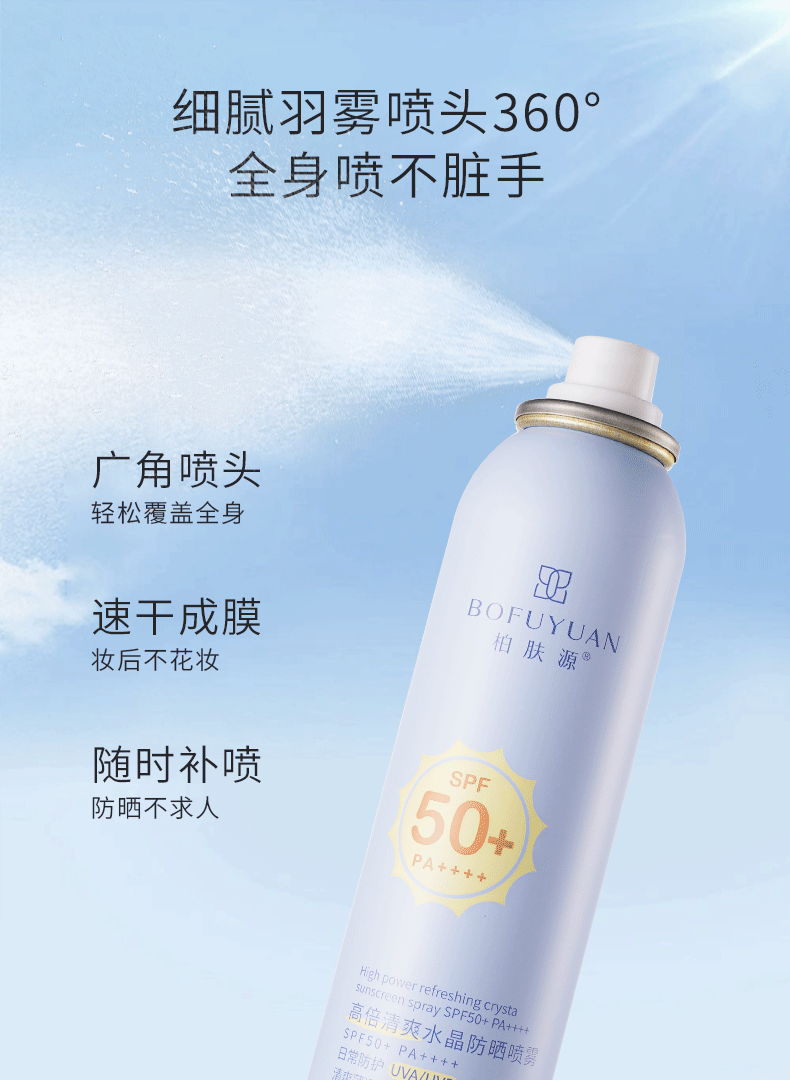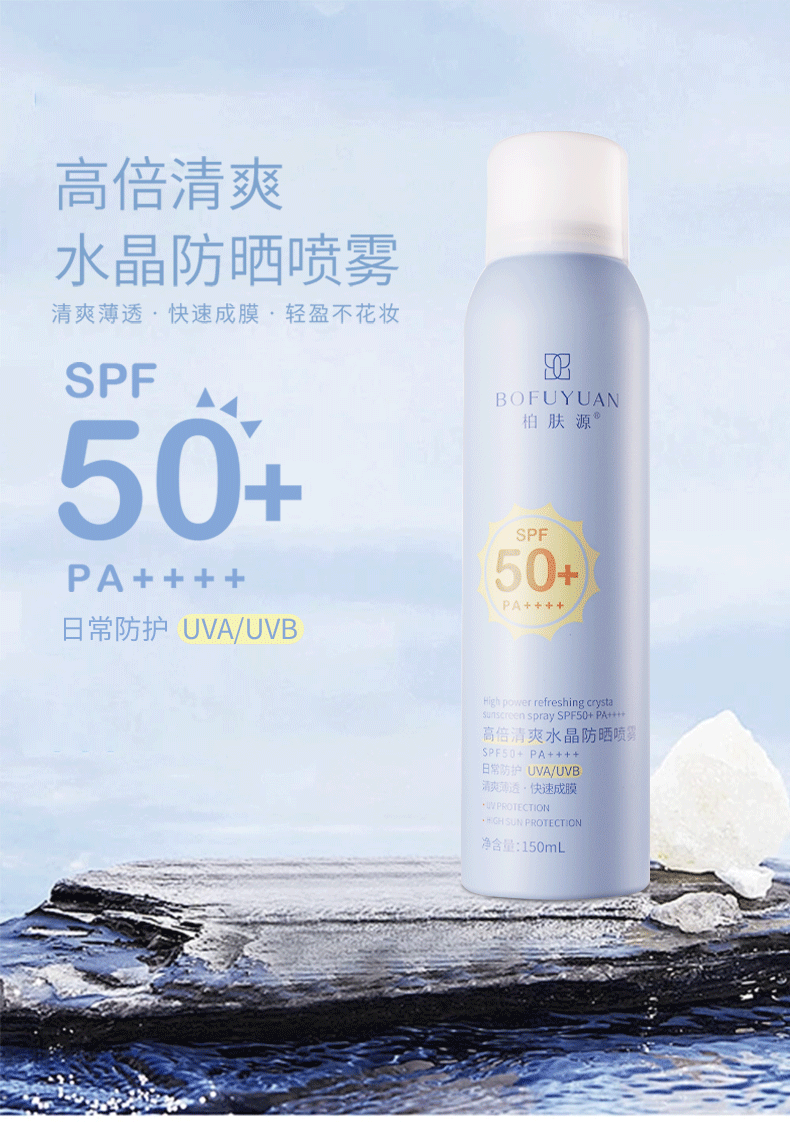 柏肤源 高倍清爽水晶防晒喷雾SPF50+ PA++++