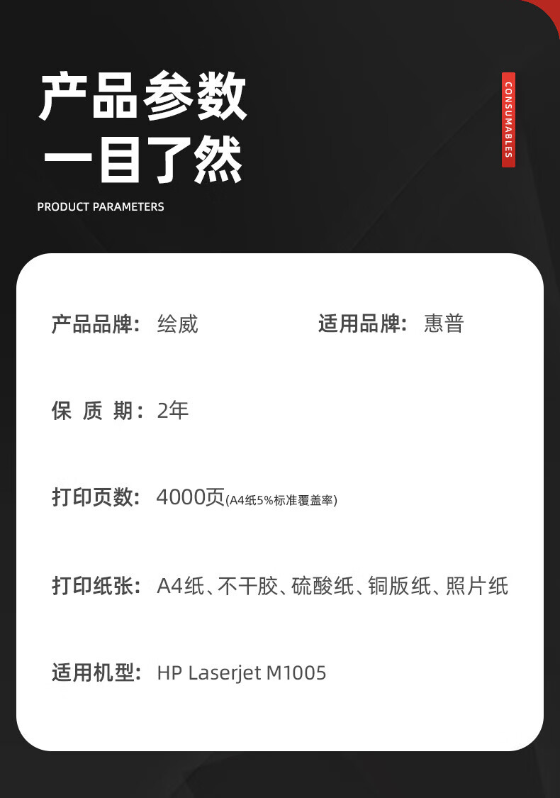绘威适用惠普HP LaserJet M1005 MFP打印机专用硒鼓碳粉墨粉墨盒【上机即用】大容量