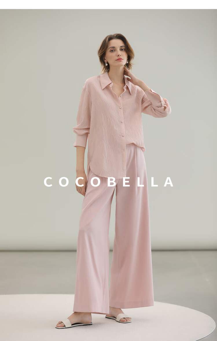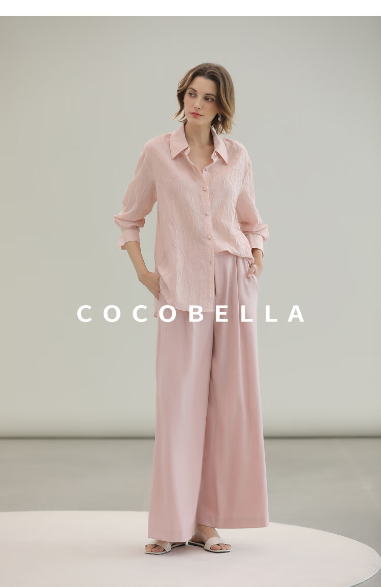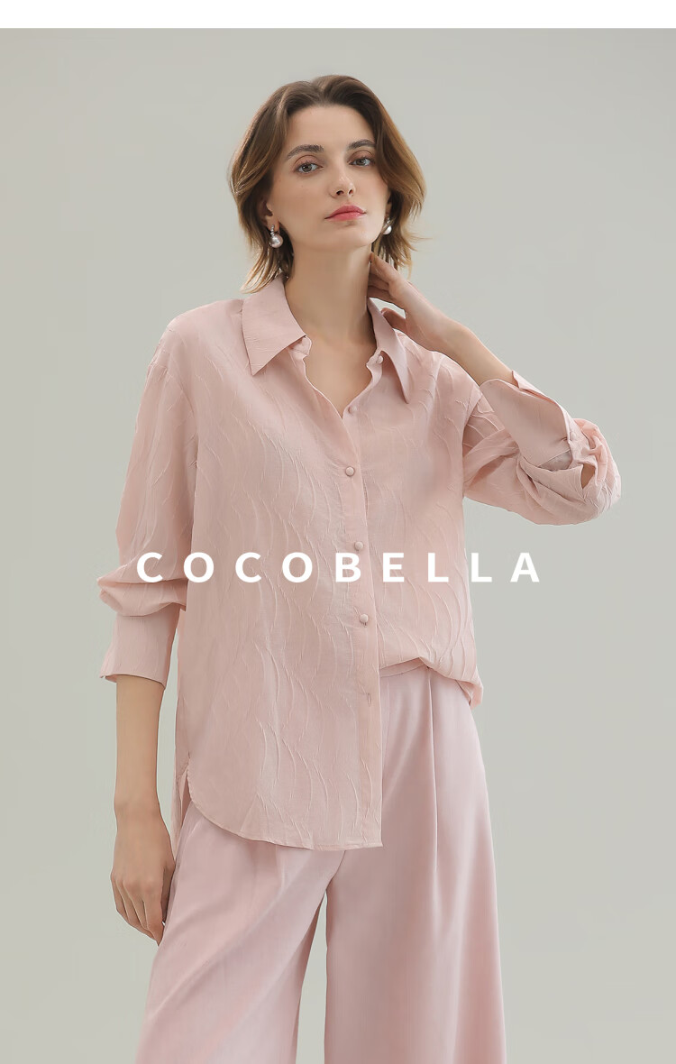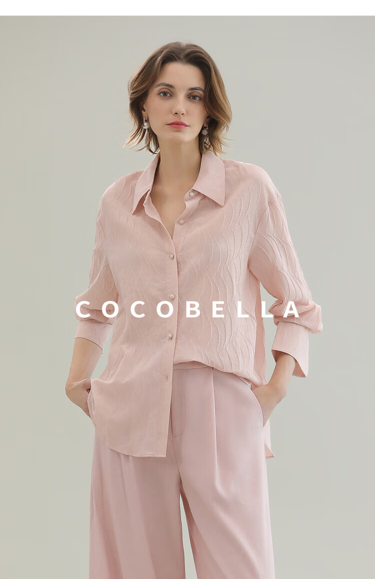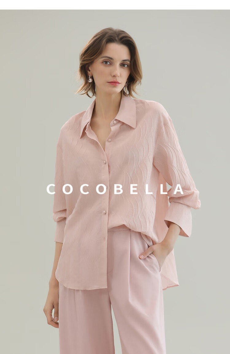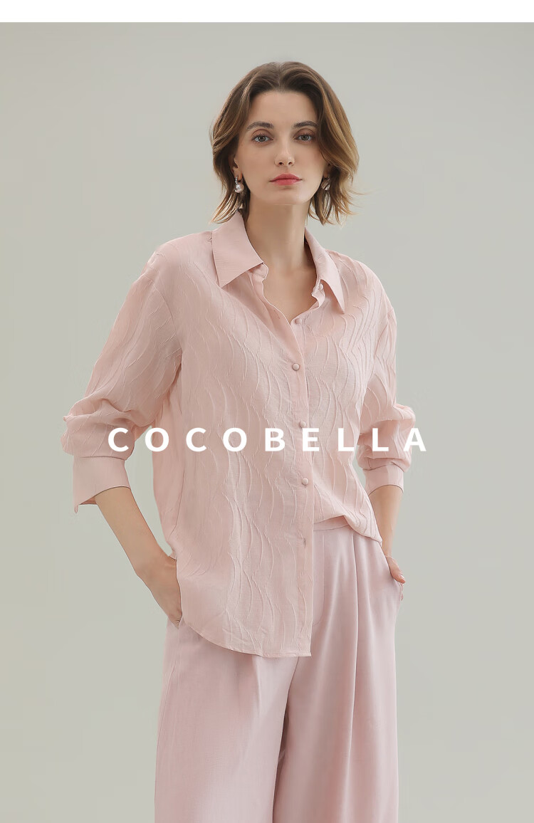 【限时秒杀】COCOBELLA立体浮雕压褶衬衫春夏新中式气质通勤长袖衬衣SR0003