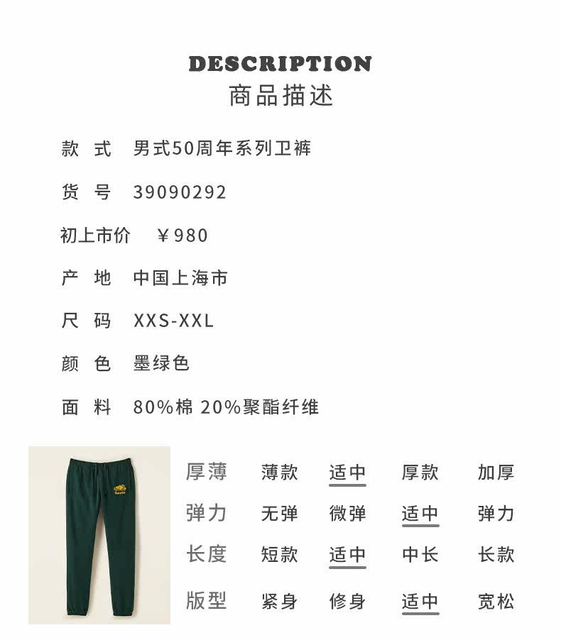 【2件9折】【ROOTS】男式50周年系列卫裤