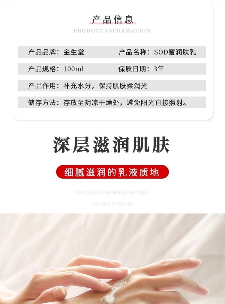 sod蜜补水保湿滋润面霜男女身体乳液护肤护手清爽不油腻100ml