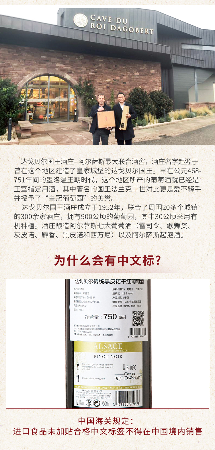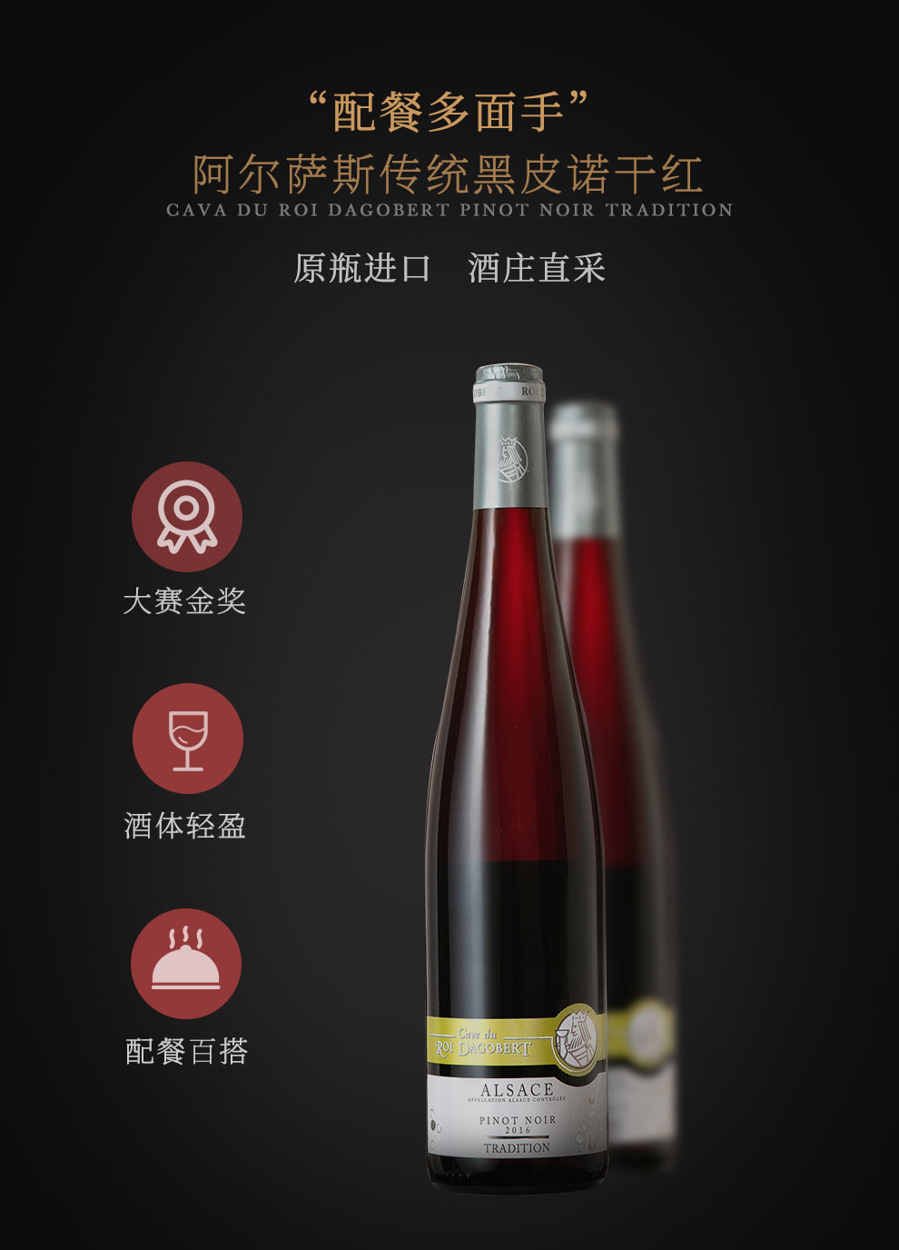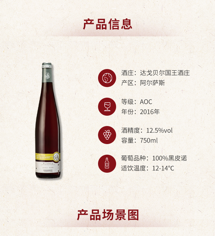 【赛斯乐】法国原装原瓶进口AOC传统黑皮诺干红葡萄酒阿尔萨斯达戈贝尔国王酒庄精品酒庄酒 750ml