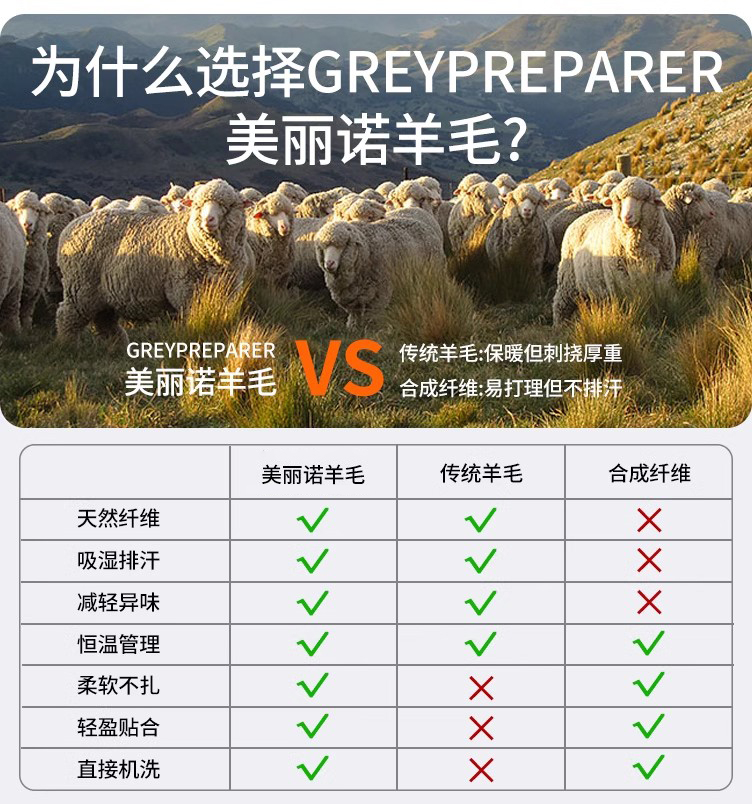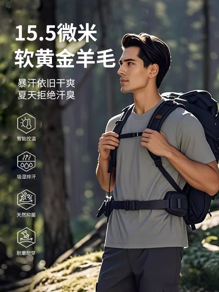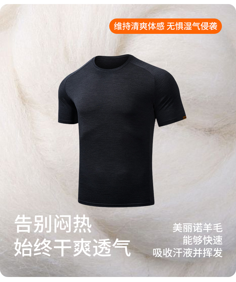 灰壳15.5微米户外男女美利奴羊毛速干短袖春夏跑步短袖T恤吸湿透气