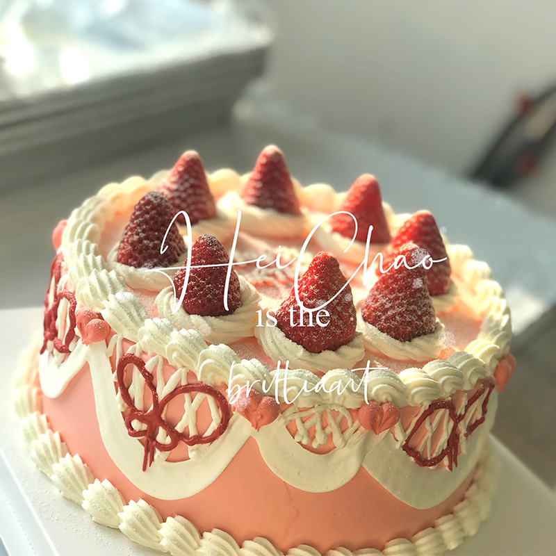 黑巢-手绘草莓甜心奶油蛋糕生日蛋糕