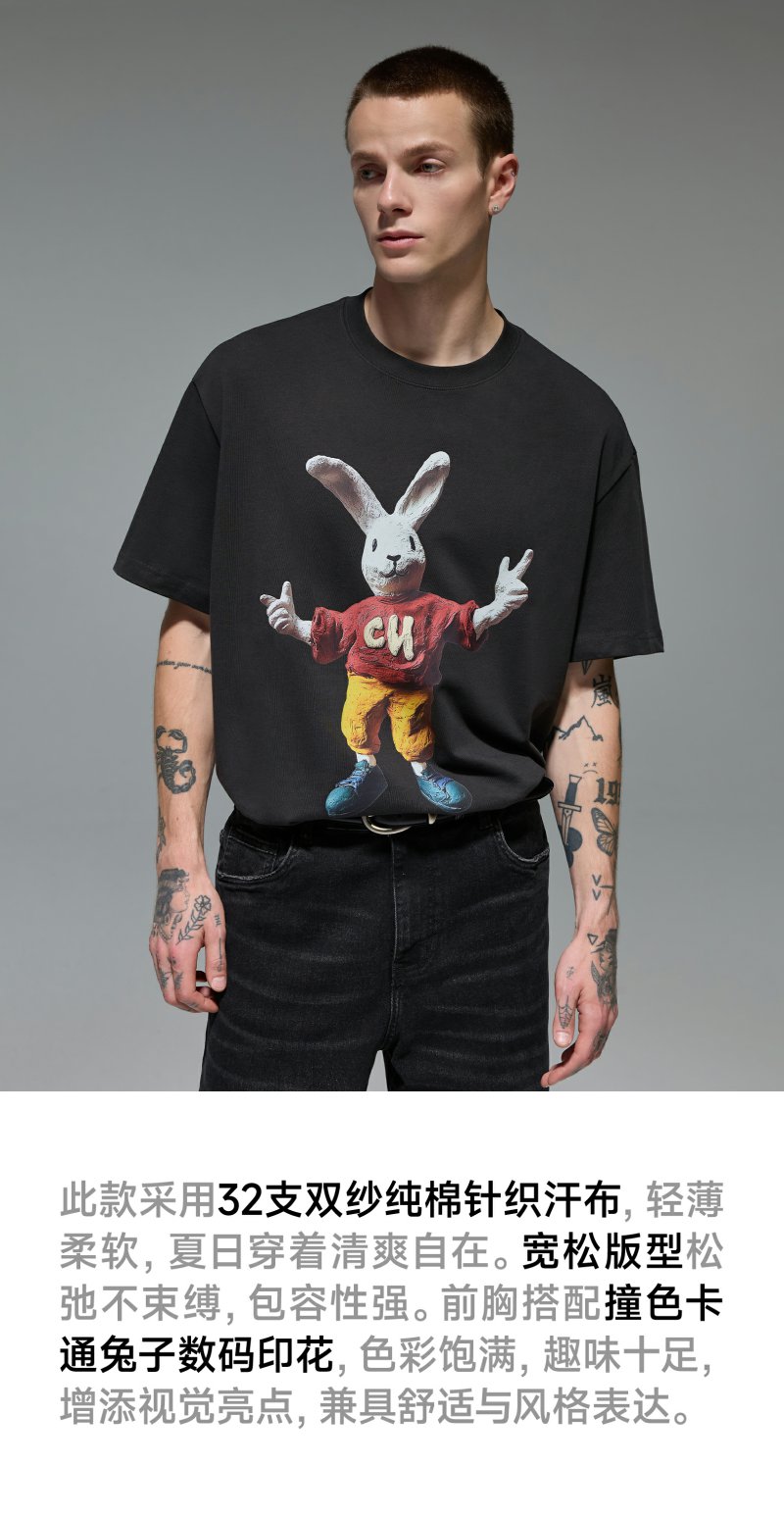 【商场同款】CHINISM赤尘 趣味数码印花短袖T恤男2025夏季半袖
