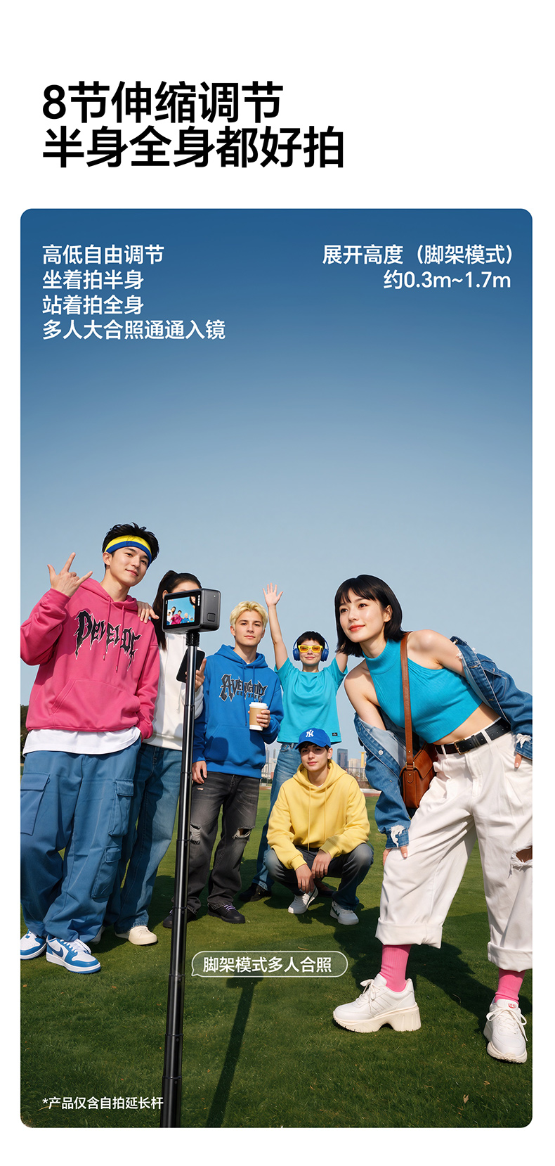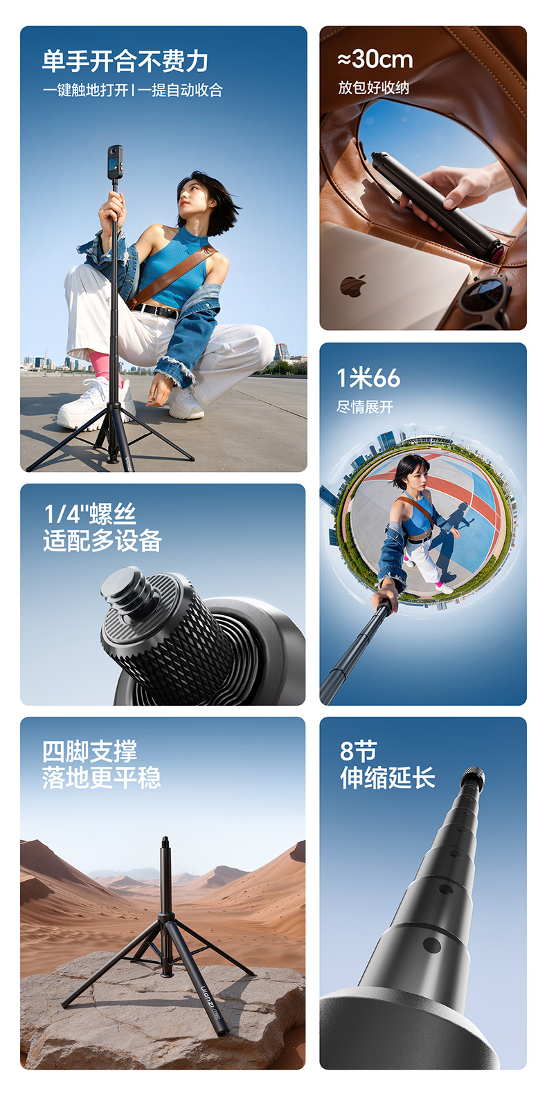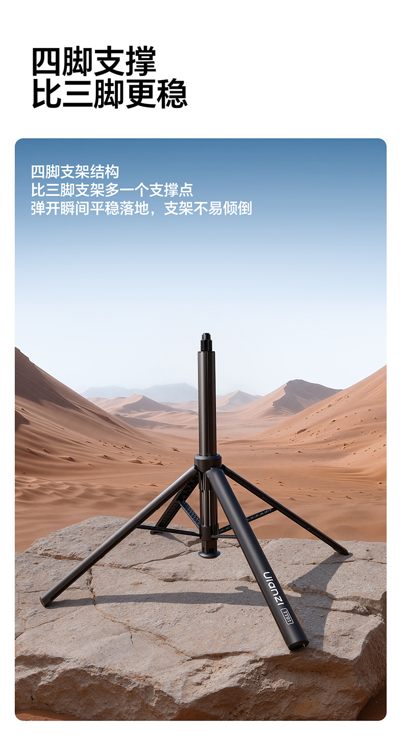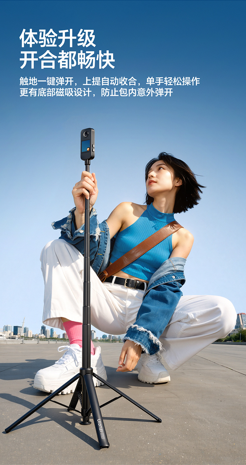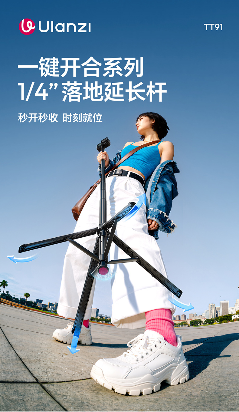 Ulanzi优篮子TT91一键开合落地脚架适用DJI大疆pocket3/Action6/5pro/4延长杆运动相机支架三脚架手持自拍杆