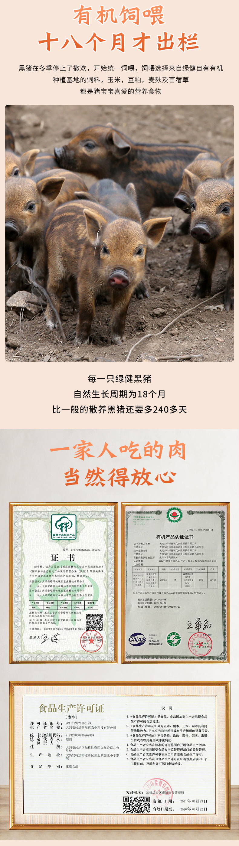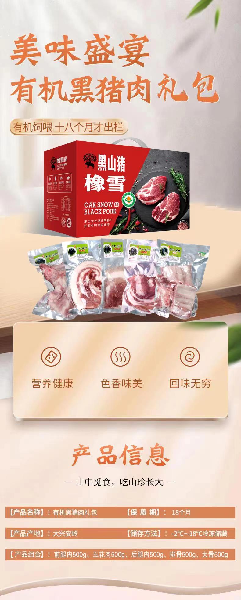 橡雪有机黑猪肉5斤礼盒(排骨500g、大骨500g、腿肉1000g、五花肉500g)