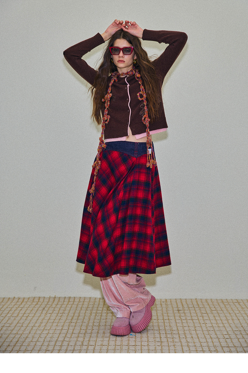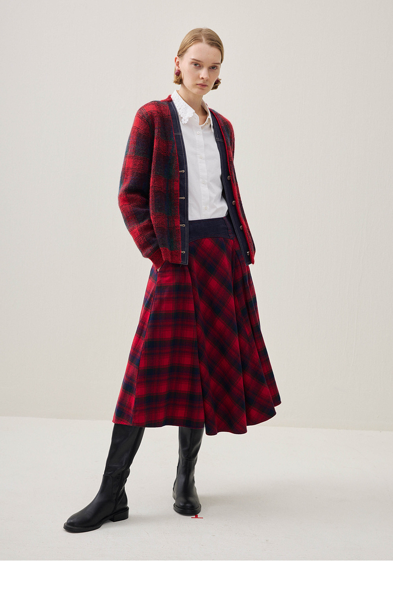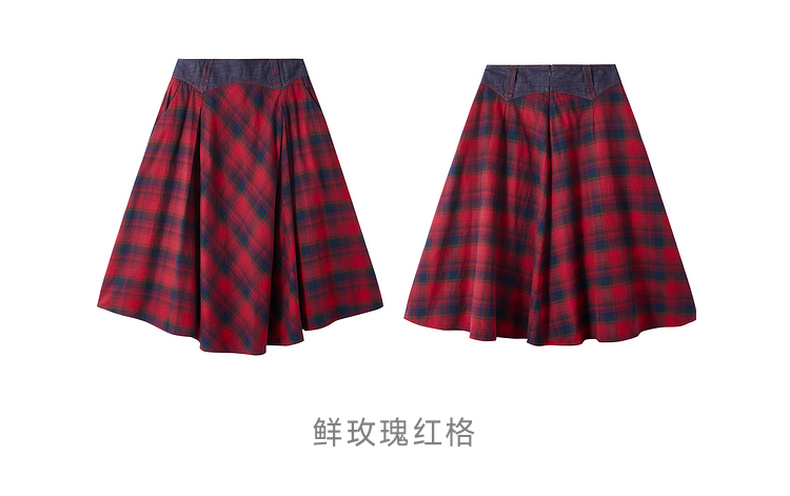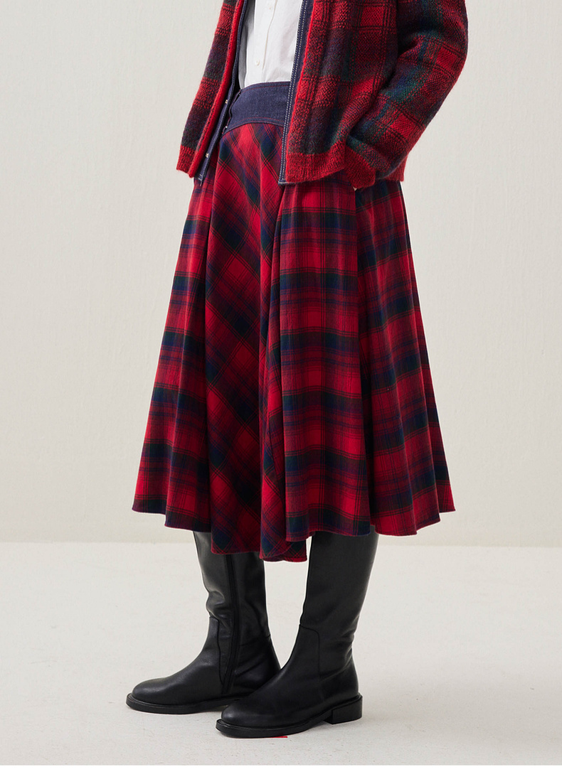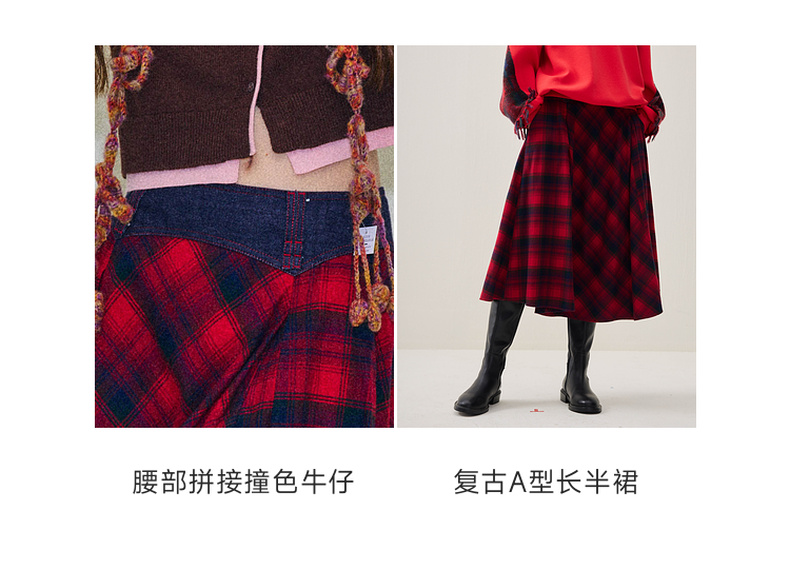谜底格纹半身裙2025年冬季新品复古优雅高腰撞色拼接女254MB1666