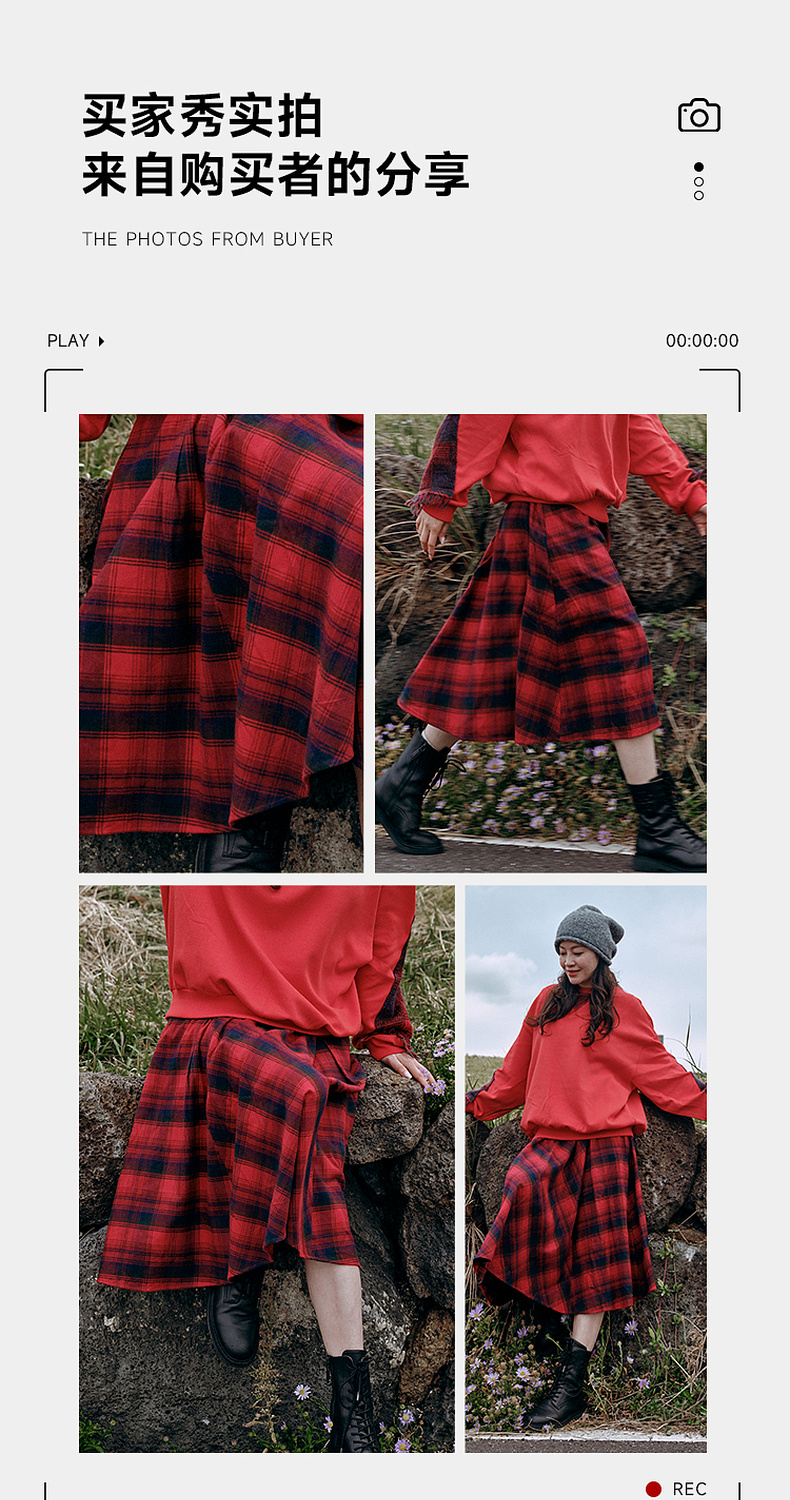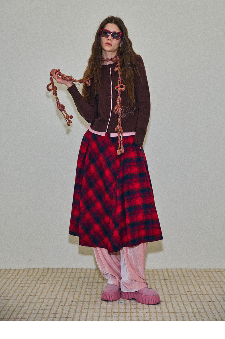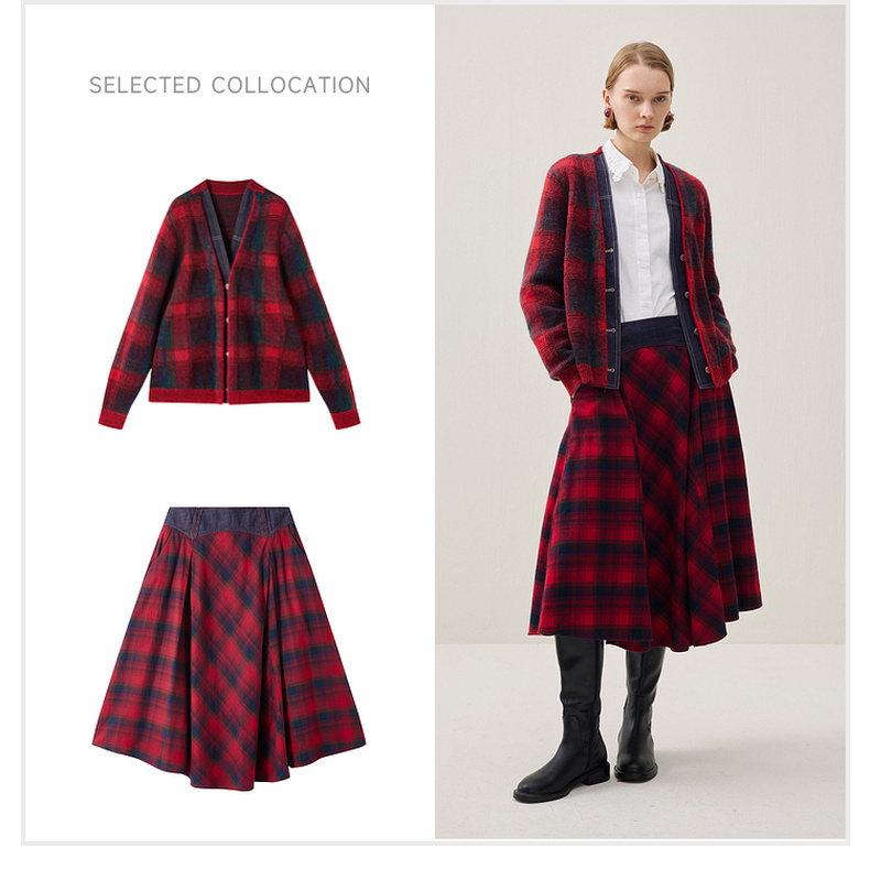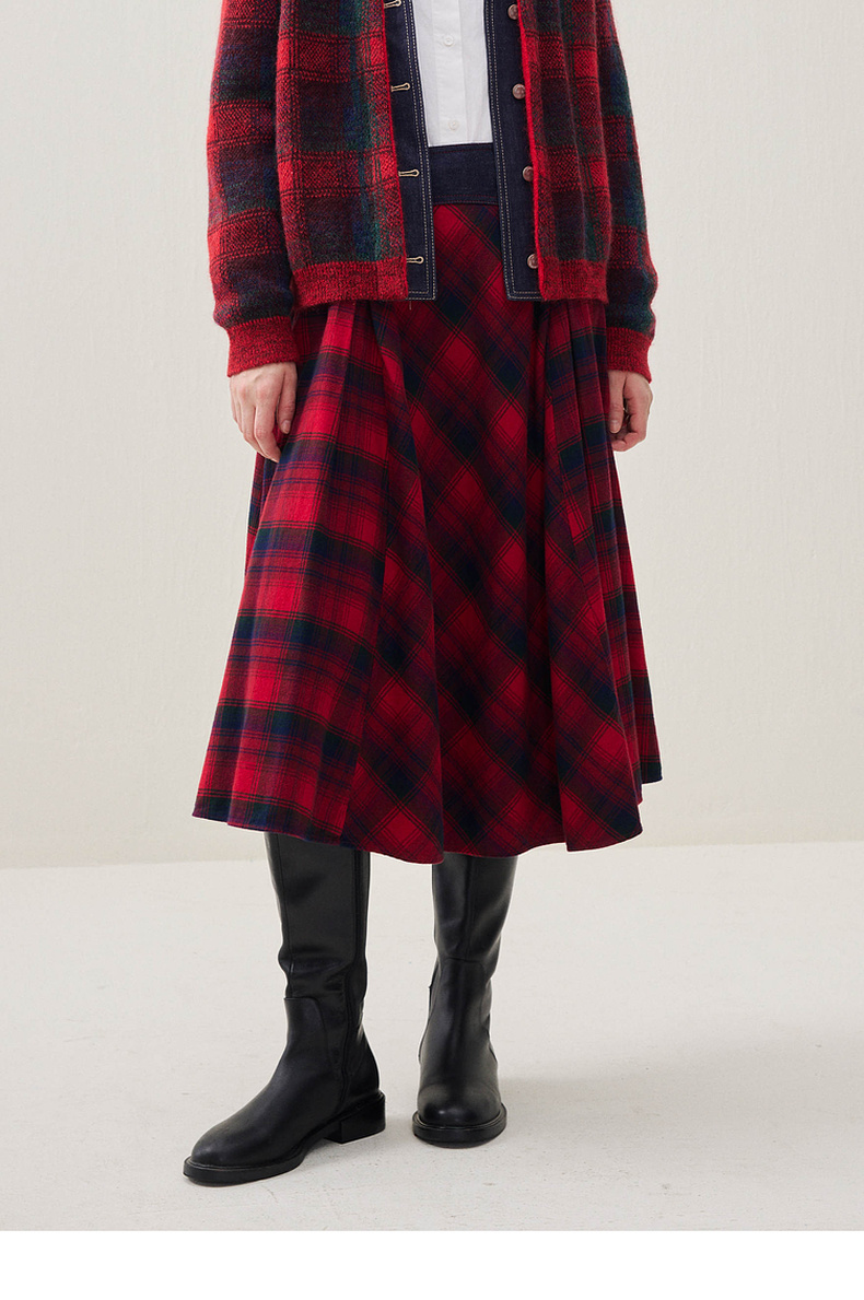 谜底格纹半身裙2025年冬季新品复古优雅高腰撞色拼接女254MB1666