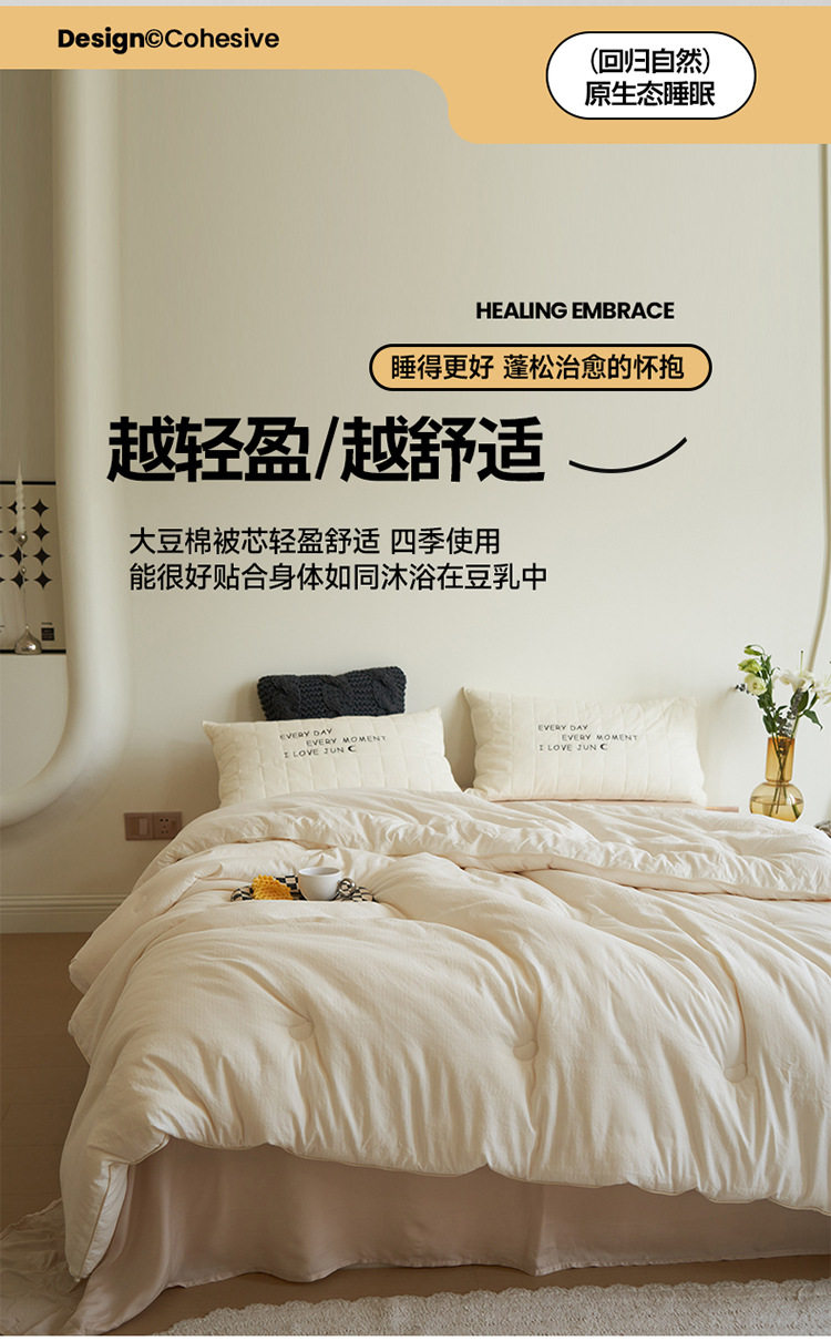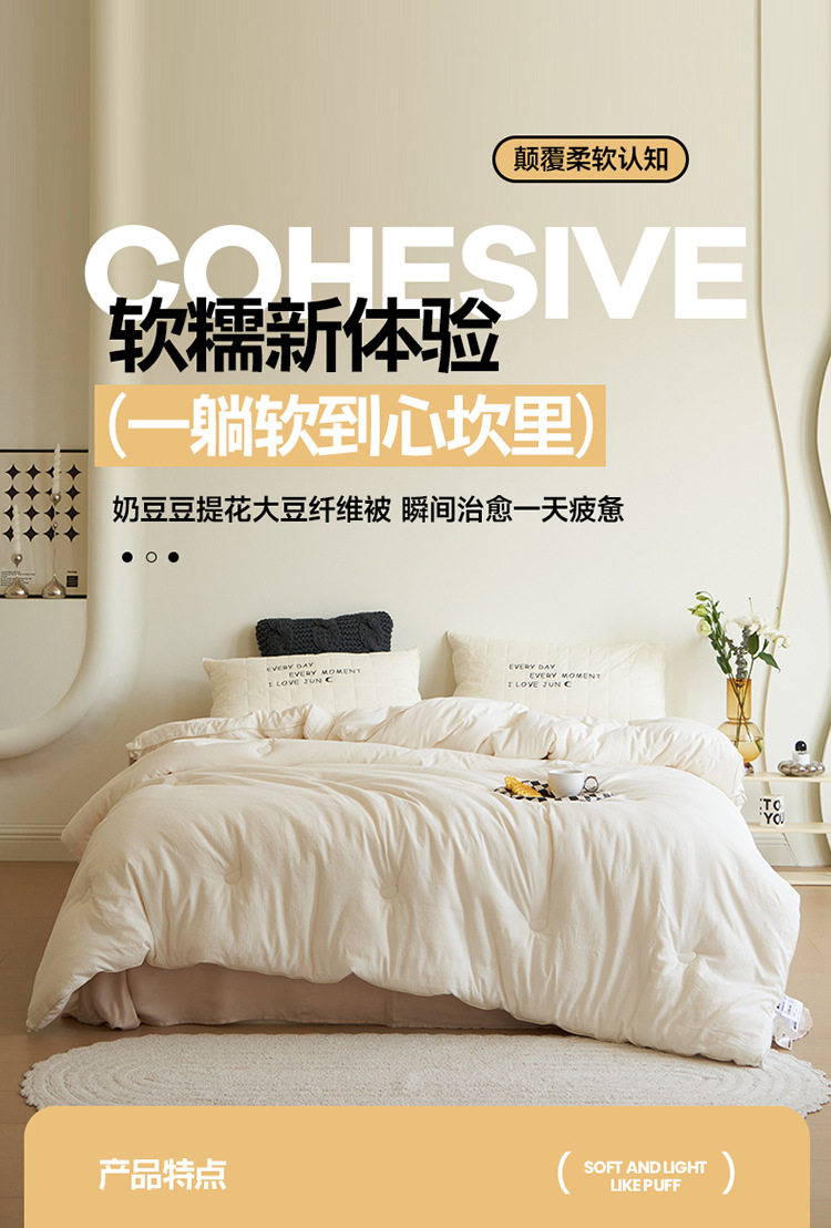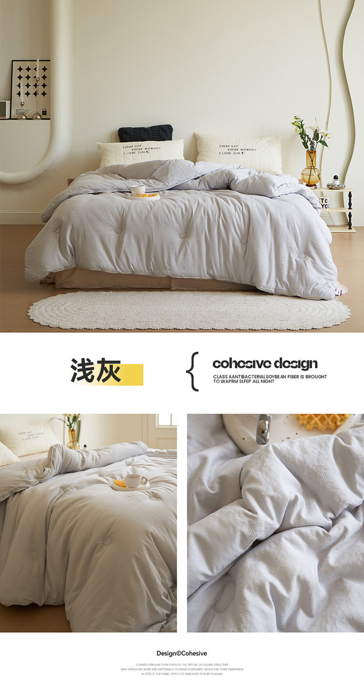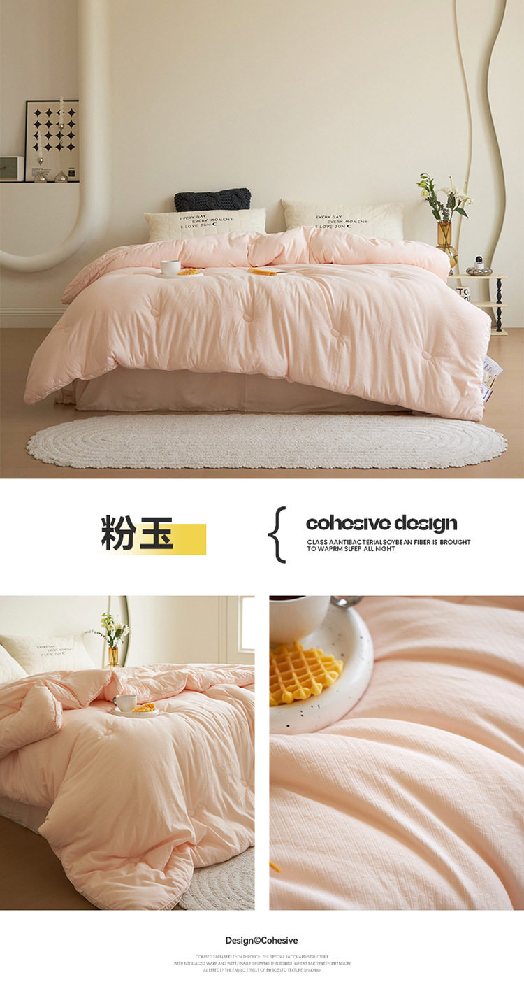 日式无印双小奶豆被子良品纯色春秋被大豆被秋冬被芯提花柔软双人