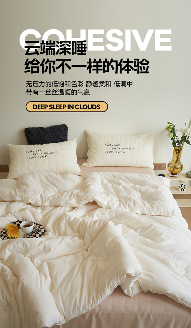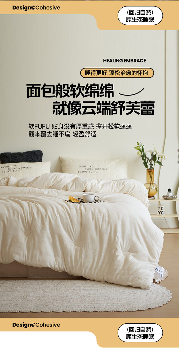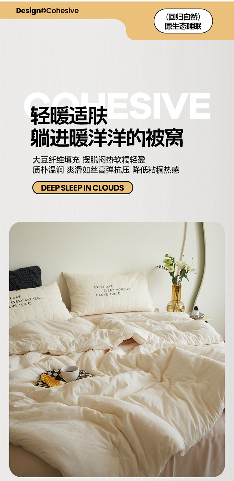 日式无印双小奶豆被子良品纯色春秋被大豆被秋冬被芯提花柔软双人