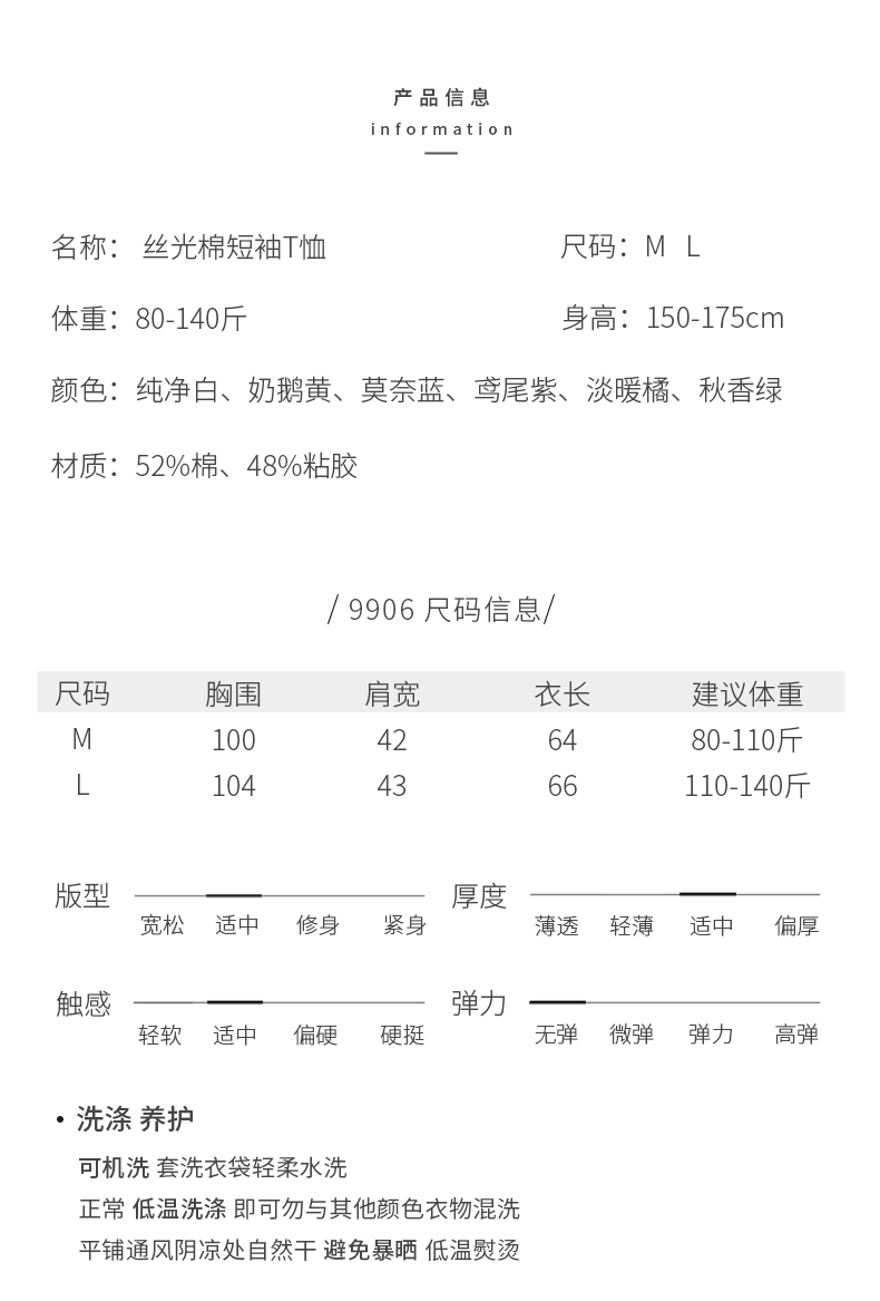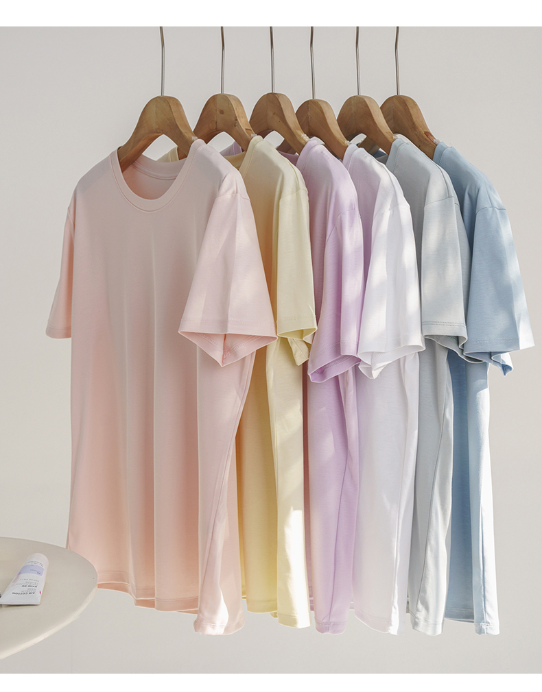 【2026夏季】液氨双面丝光棉 · 圆领T恤 冰凉爽感透气 多彩纯色短袖宽松上衣
