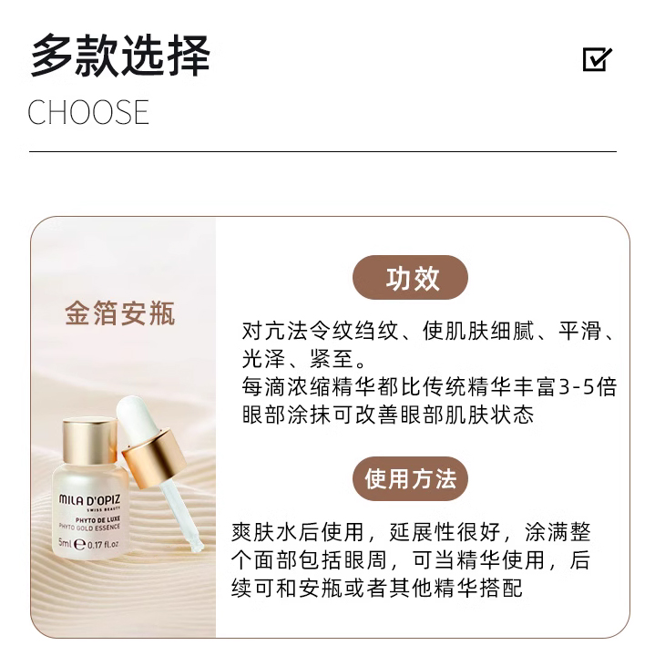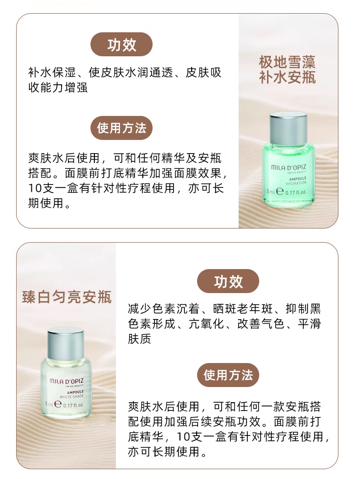 【商品名称】MILA D'OPIZ米拉安瓶系列5ml 金箔禁用/雪肌亮白/密集VC/极地雪藻