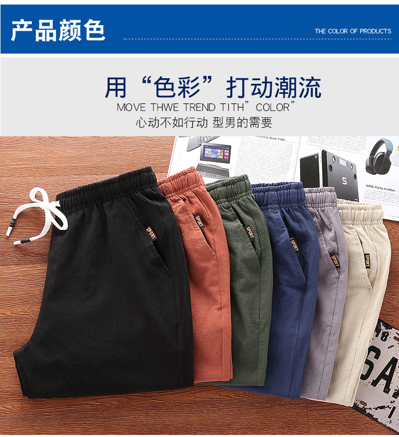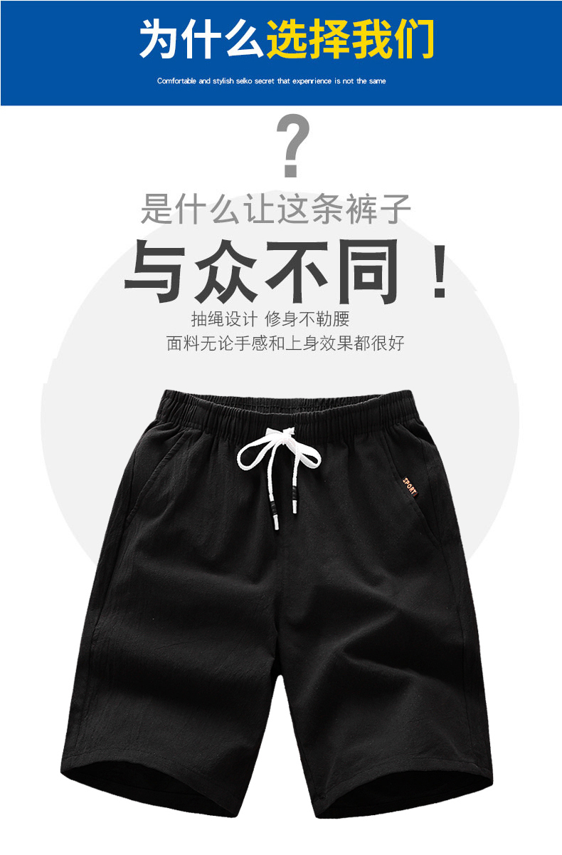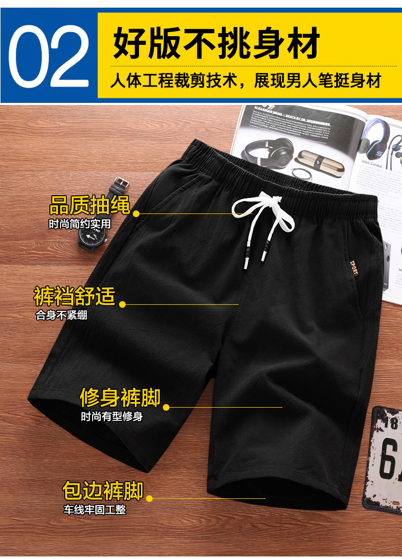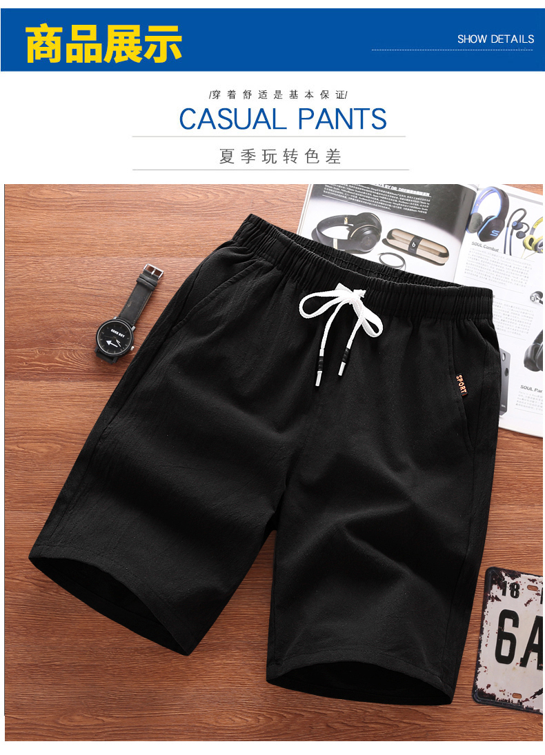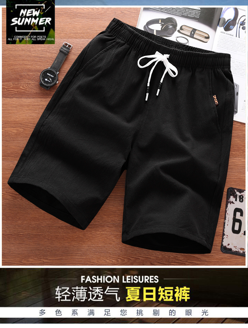 【买一送一 舒适透气】 夏季短裤男潮薄款直筒黑色棉麻裤宽松大码透气潮流胖五分裤