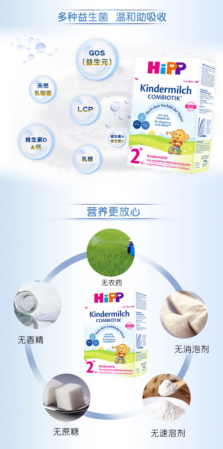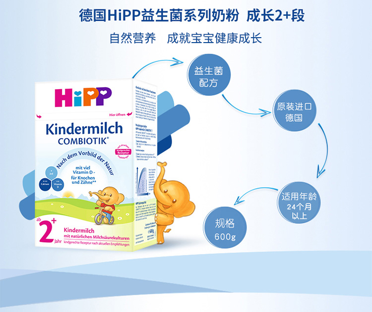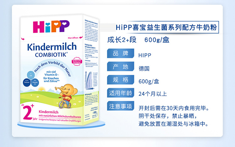 德国Hipp喜宝益生元益生菌婴幼儿奶粉2+段600g2岁及2岁以上
