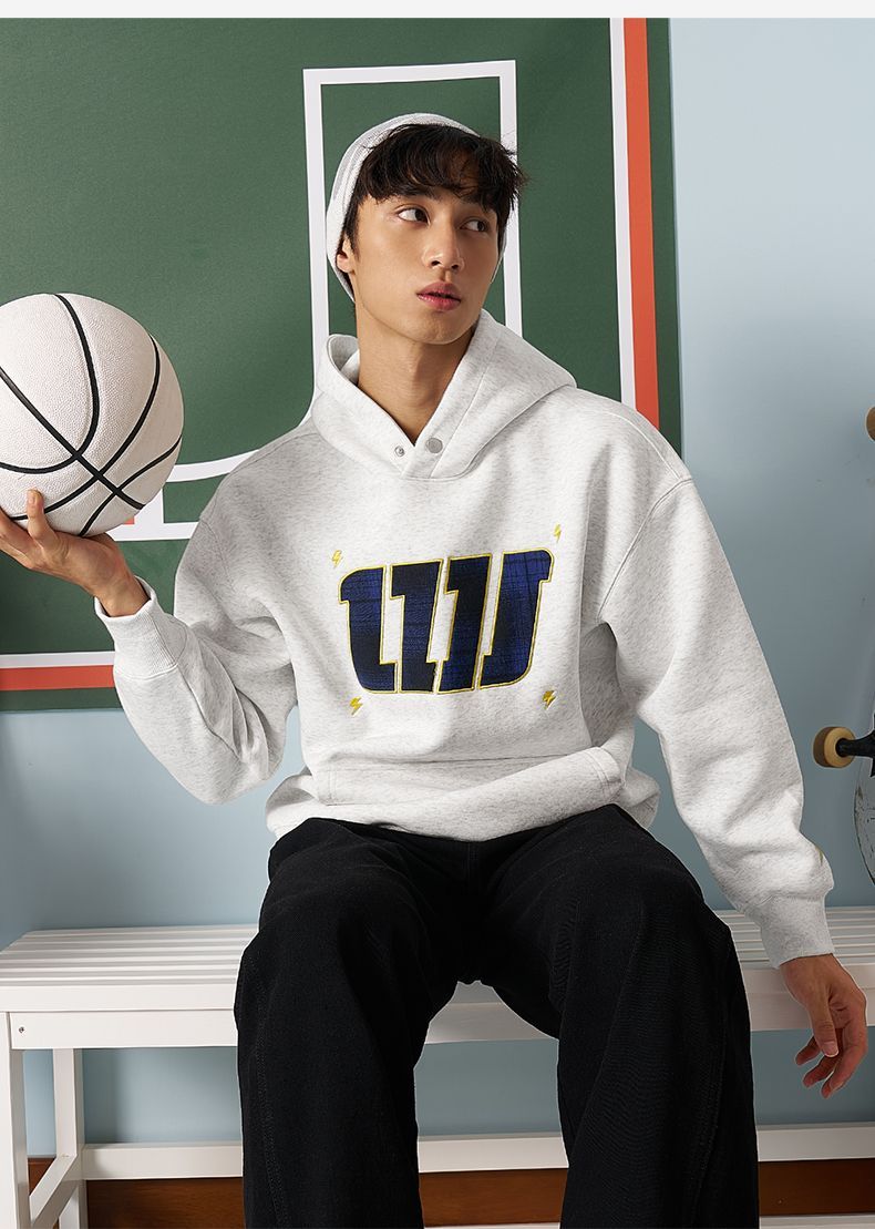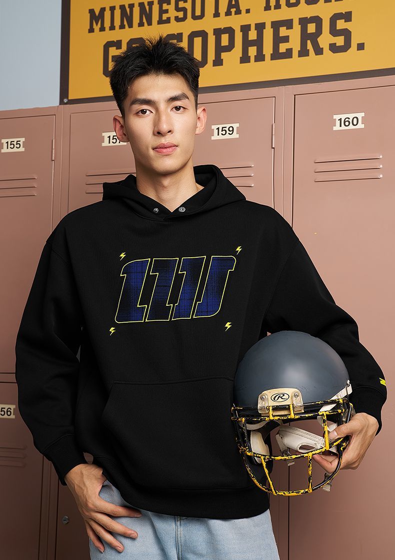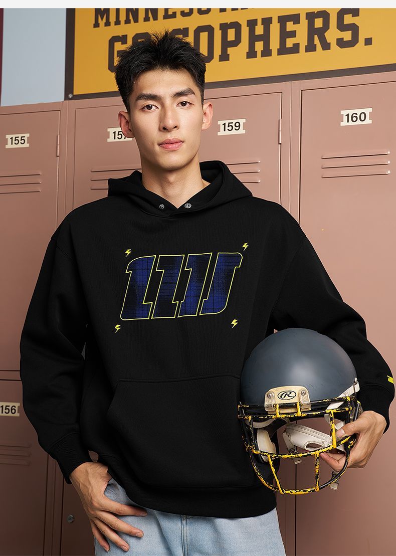 有志者UZIS美式潮流刺绣卫衣男秋季宽松复古重磅运动套头衫明星
