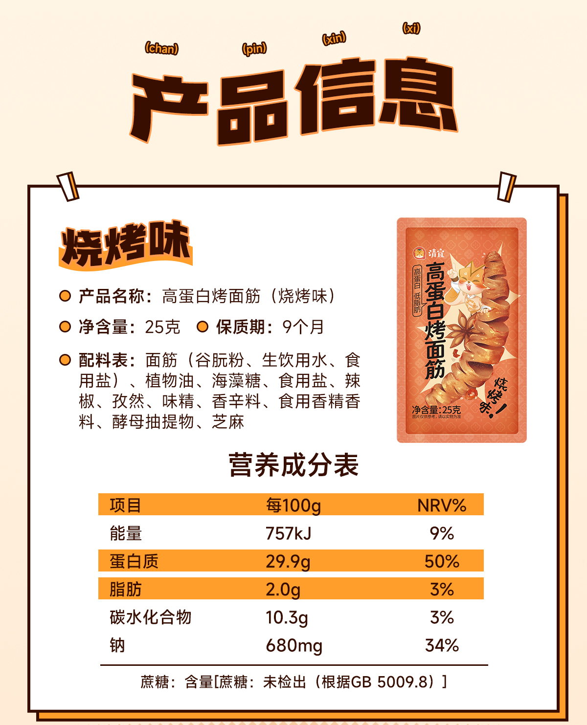 【39任选10件】高蛋白烤面筋25g*3袋