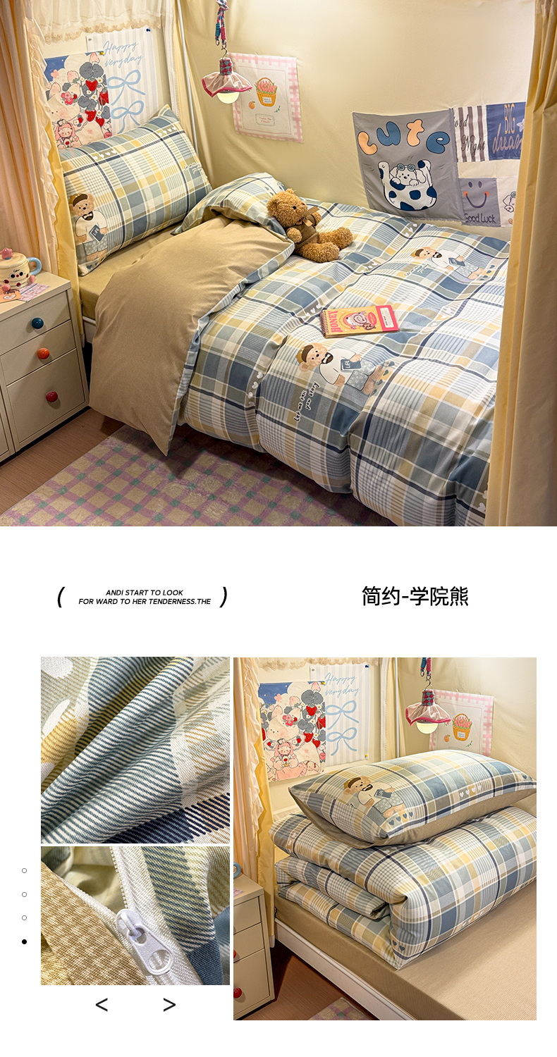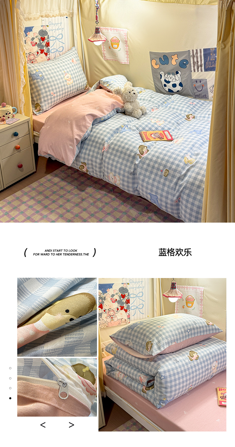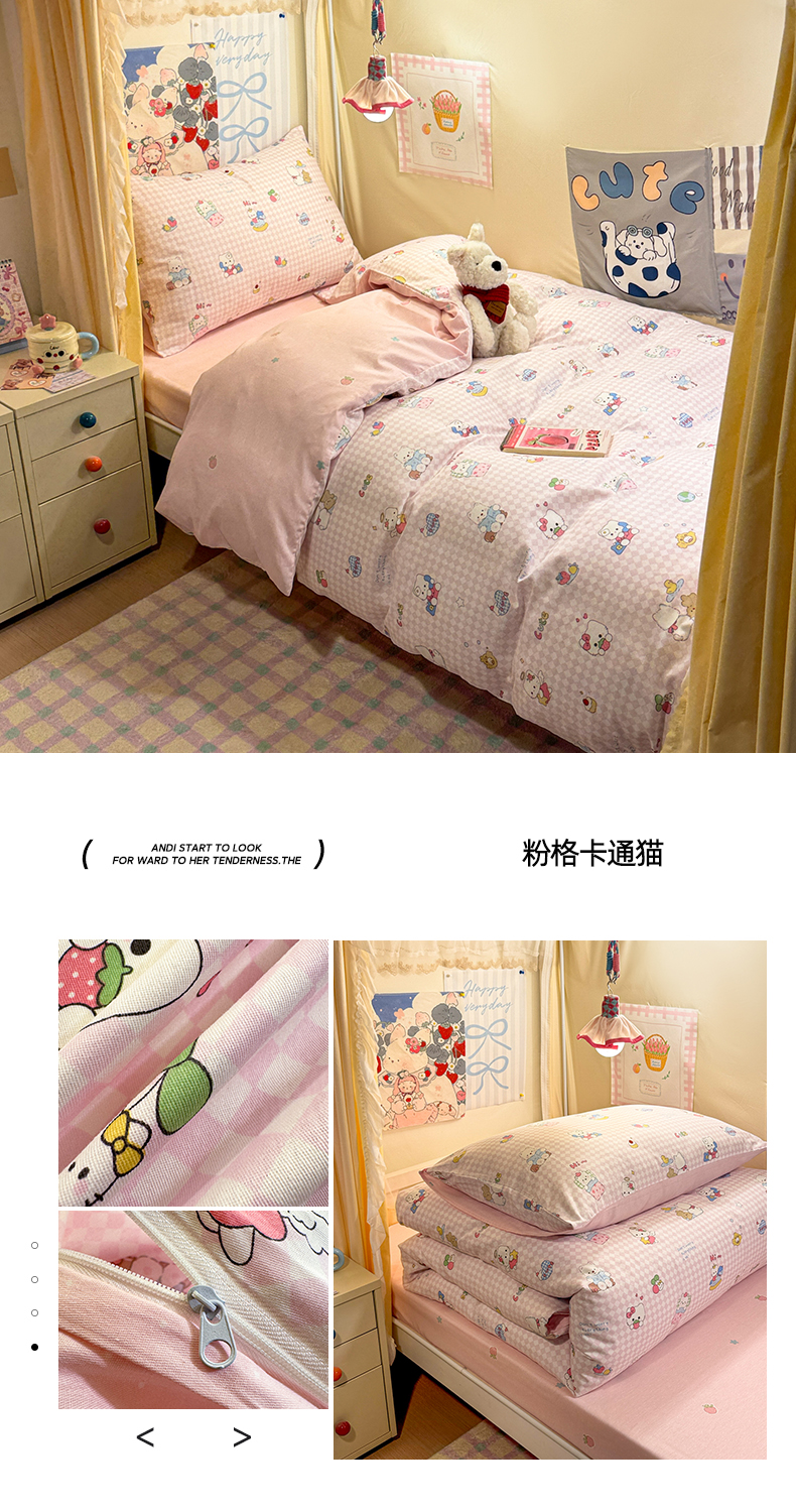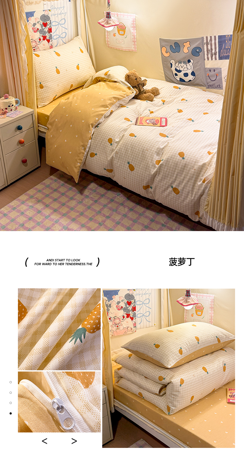 自然醒卡通花卉简约学生床套件40支全棉斜纹三件套ins宿舍床单床笠四件套JY