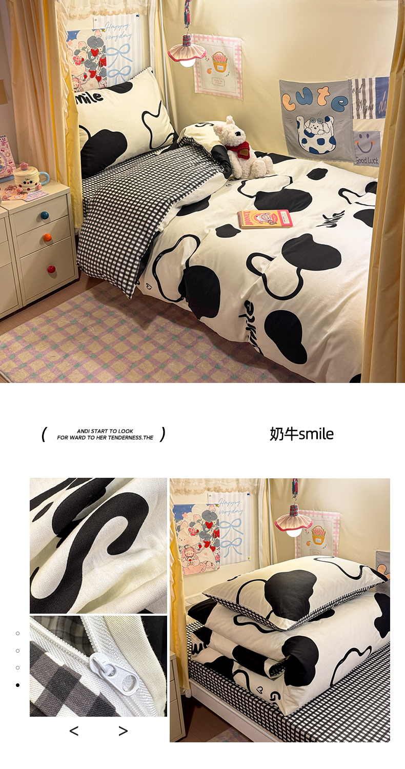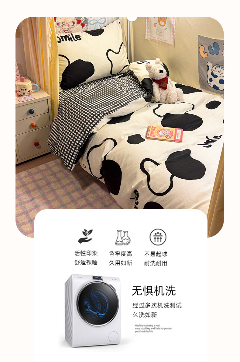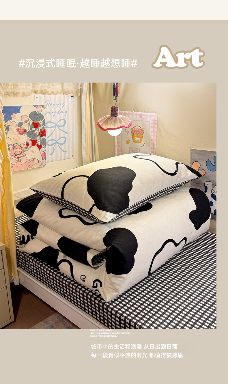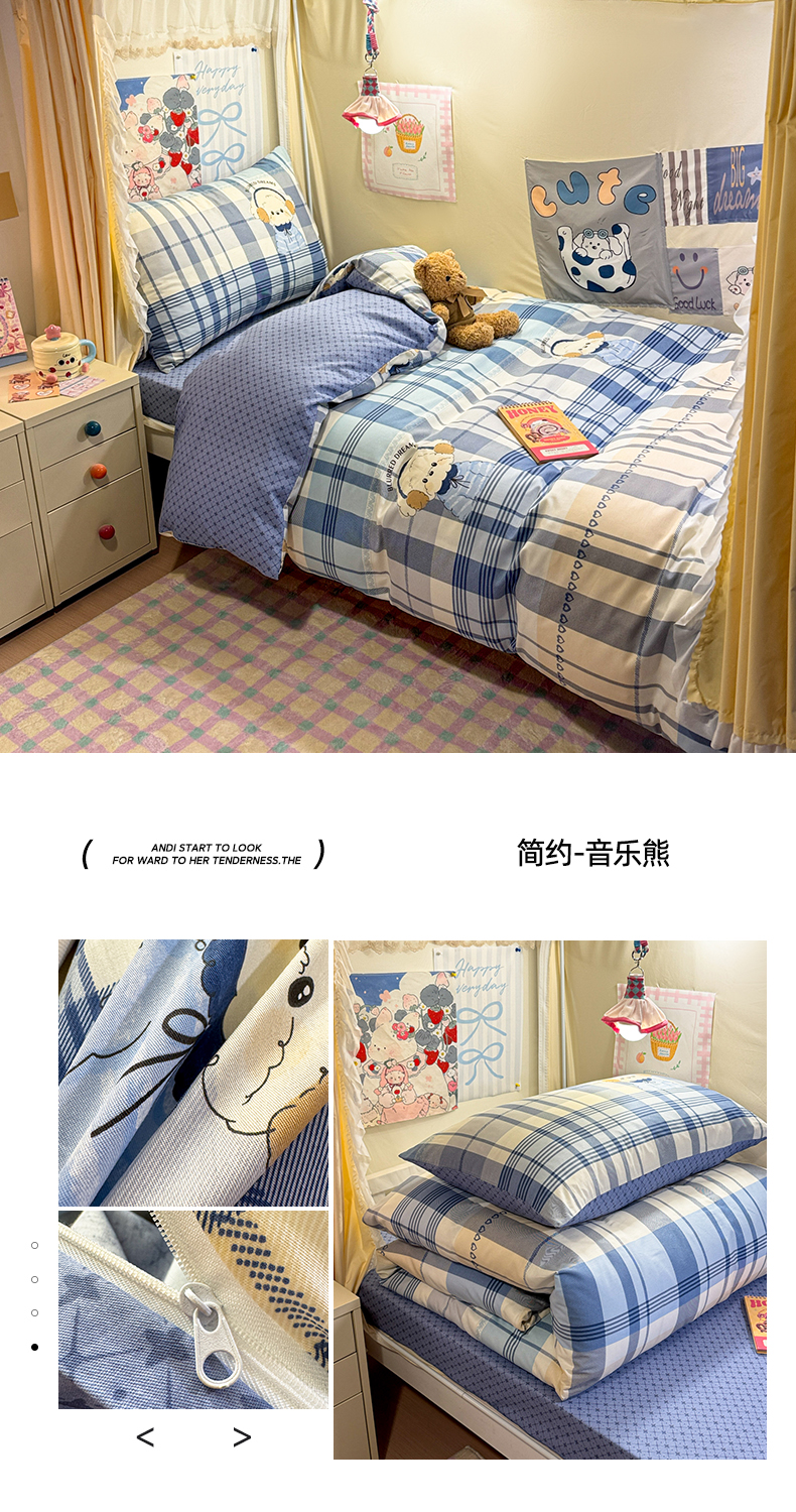 自然醒卡通花卉简约学生床套件40支全棉斜纹三件套ins宿舍床单床笠四件套JY